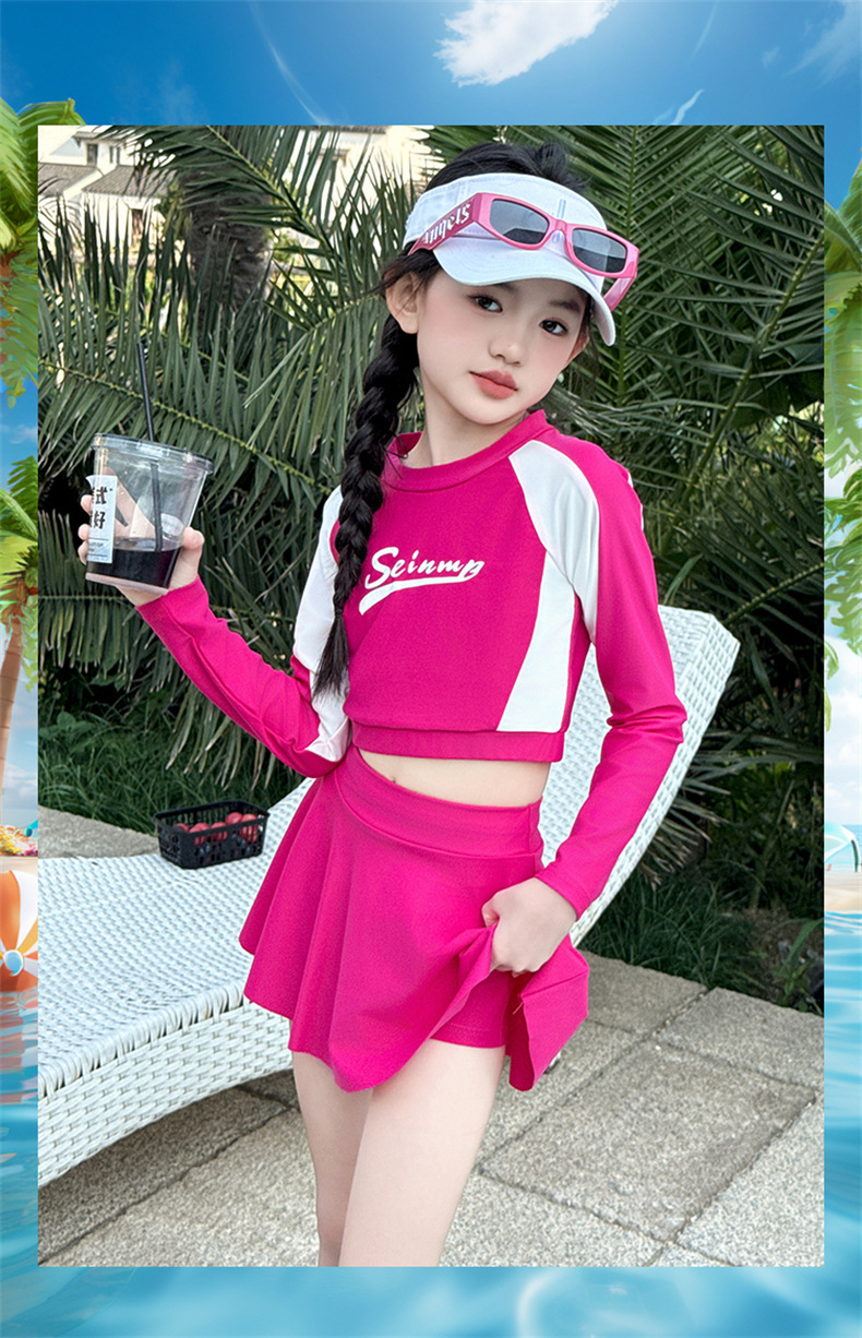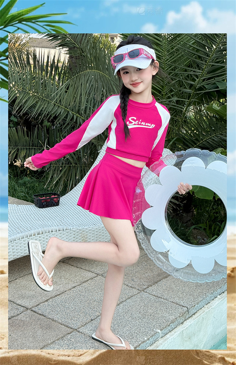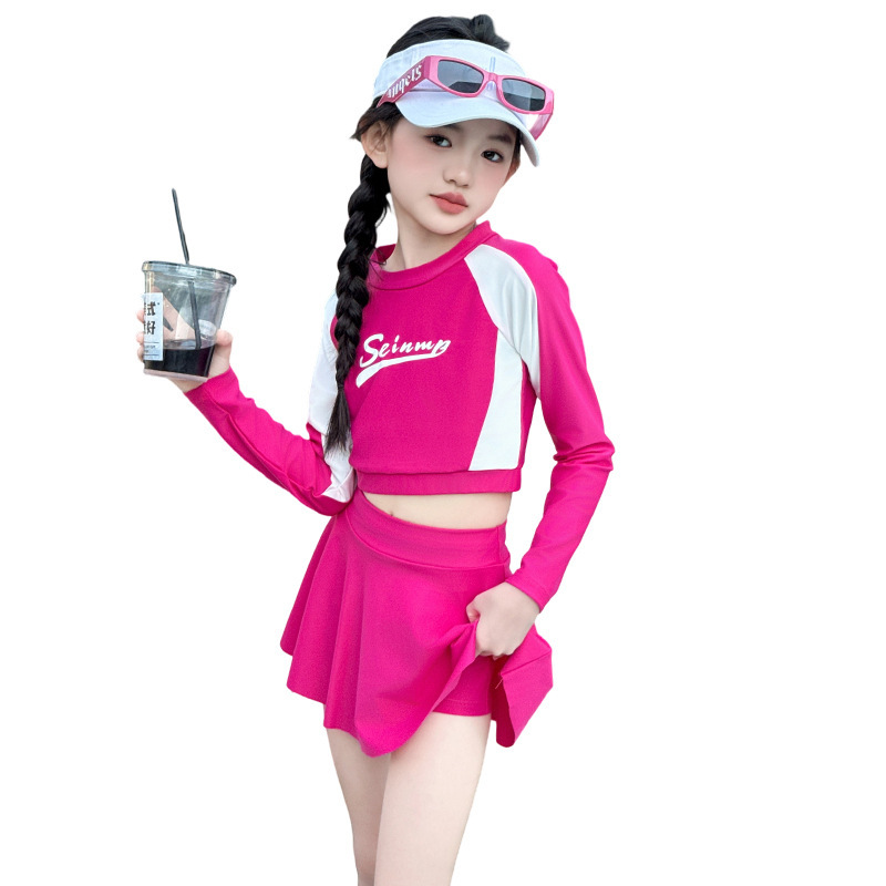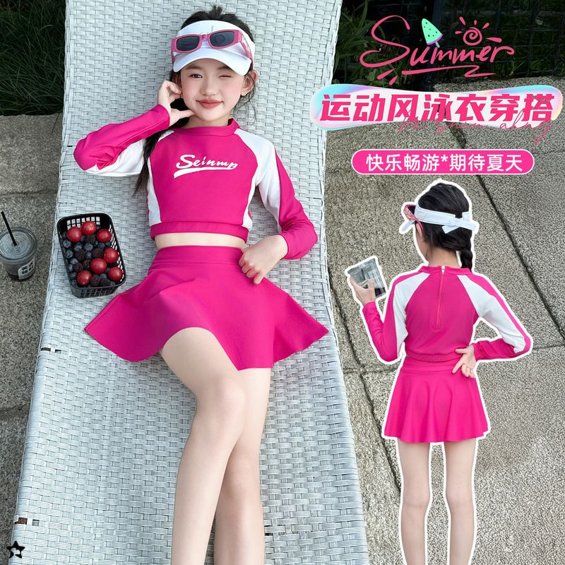 Детский купальник для девочек лето 2025, новый, раздельный, с юбкой, для больших детей, милый, в стиле допамина