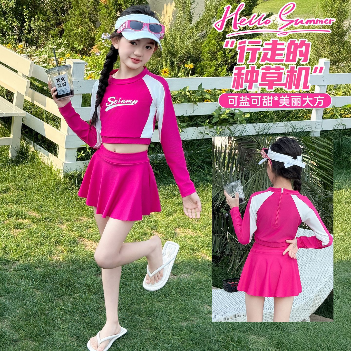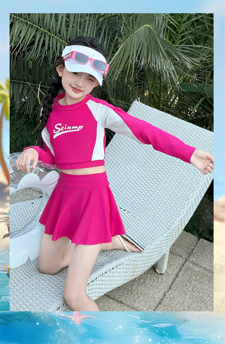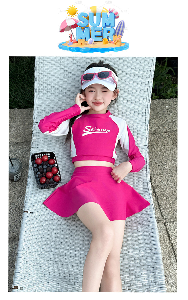 Детский купальник для девочек лето 2025, новый, раздельный, с юбкой, для больших детей, милый, в стиле допамина
