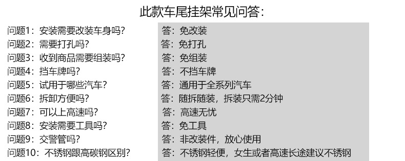 Хэтчбек-внедорожник с двумя автомобилями; Классическая модель из высокоуглеродистой стали (универсального типа), подвешивающая три автомобиля.; Двойная складная высокоуглеродистая сталь (универсальная подвеска, предотвращающая падение, 1 автомобиль); Двойная складная высокоуглеродистая сталь (универсальная подвеска, предотвращающая падение, 2 автомобиля); Двойная складная высокоуглеродистая сталь (универсальная подвеска против падения для 3 автомобилей); Двойная складная нержавеющая сталь (универсальная подвеска против падения 1 автомобиль; Двойная складная нержавеющая сталь (универсальная подвеска против падения для 2 автомобилей); Двойная складная нержавеющая сталь (универсальная подвеска против падения на 3 автомобиля)