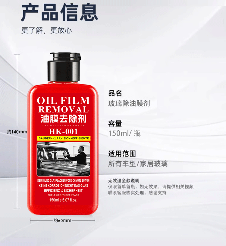 Крем для удаления масляной пленки, красная плоская бутылка, 150 мл (китайская этикетка); Крем для удаления масляной пленки, красная плоская бутылка 150 мл (трансграничная английская этикетка); Салфетка для очистки масляной пленки