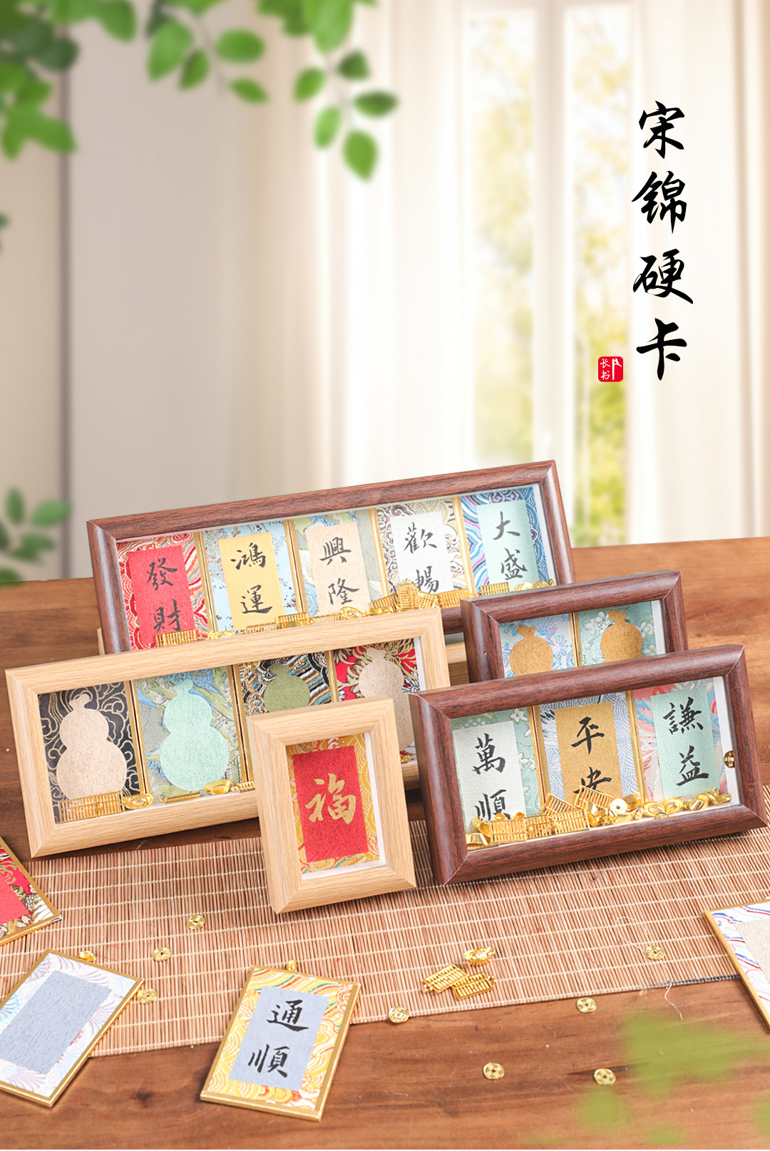 Маленькая мини-фото рамка Fuka Song из жесткого картона, рамка для рисования, рисовая бумага, культурная и творческая карточка для каллиграфии, украшение для стола, ткань Jin Qian