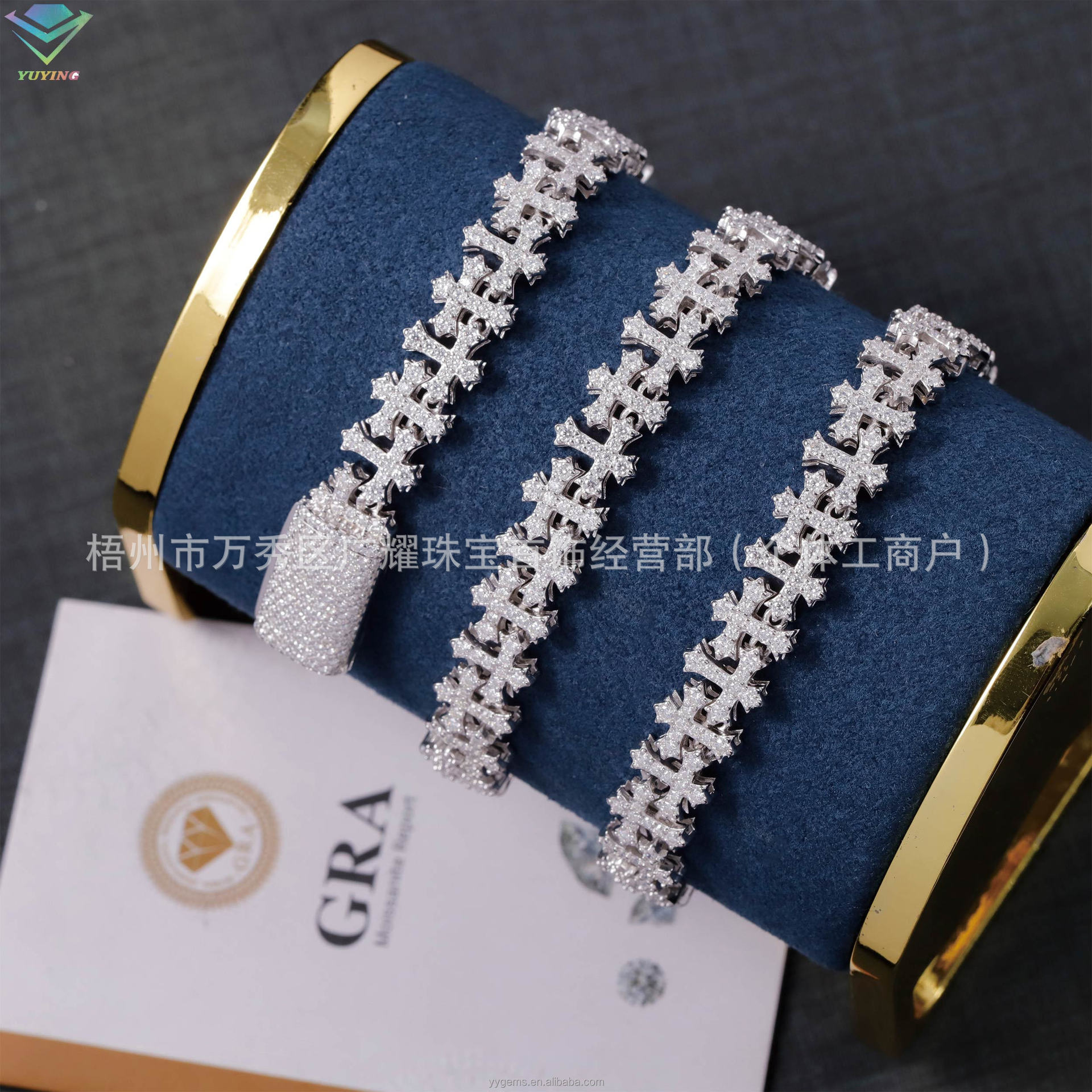 Европейское и американское хип-хоп колье-крестик из серебра S925 с инкрустацией из муассанита цвета D VVS, модное, трендовое, унисекс, ювелирное изделие