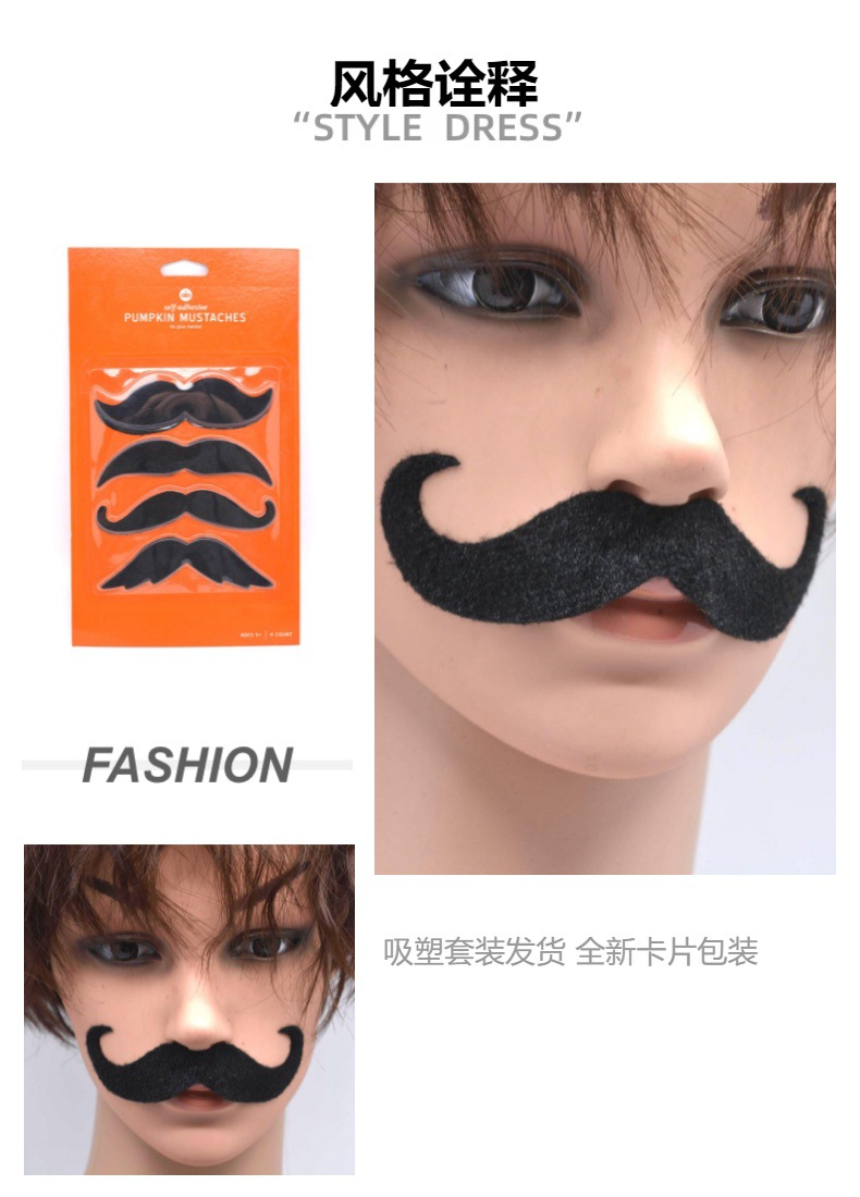 Реквизит для костюмов на Хэллоуин: накладной усов, черный, самоклеящийся, для праздничных вечеринок, забавный, реалистичный, для ролевых игр