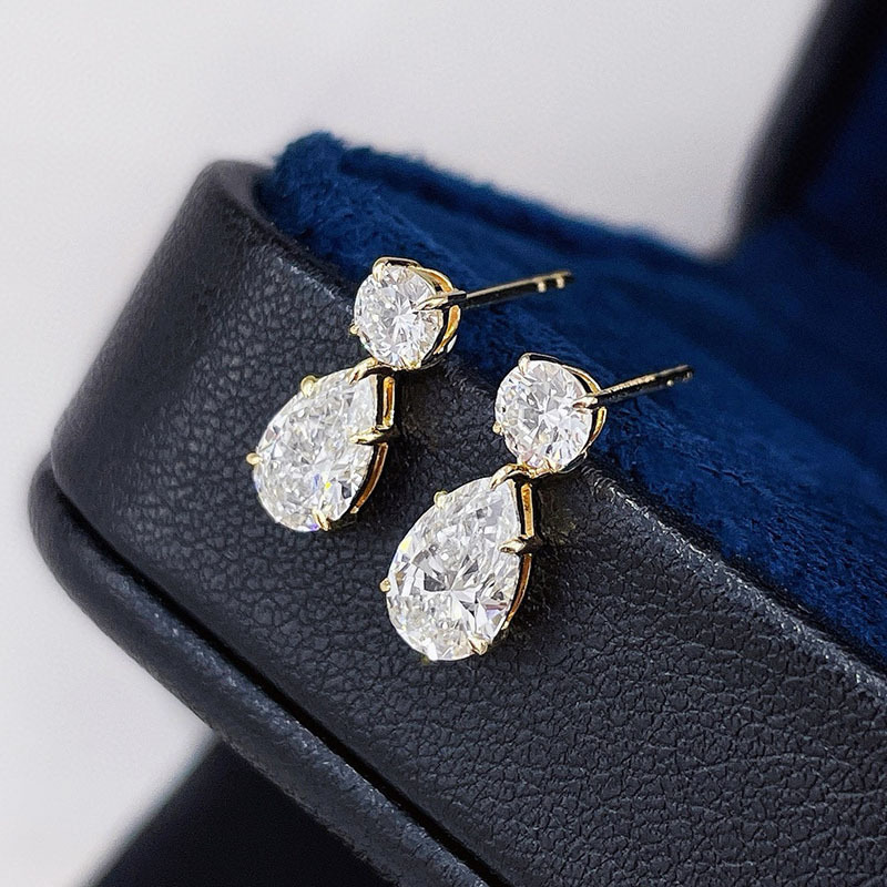 Серьги с культивированными бриллиантами, белое золото 18 карат, дизайн с бриллиантами, карат, бриллианты, розовое золото, серьги с бриллиантами HPHT для женщин, грушевидной формы