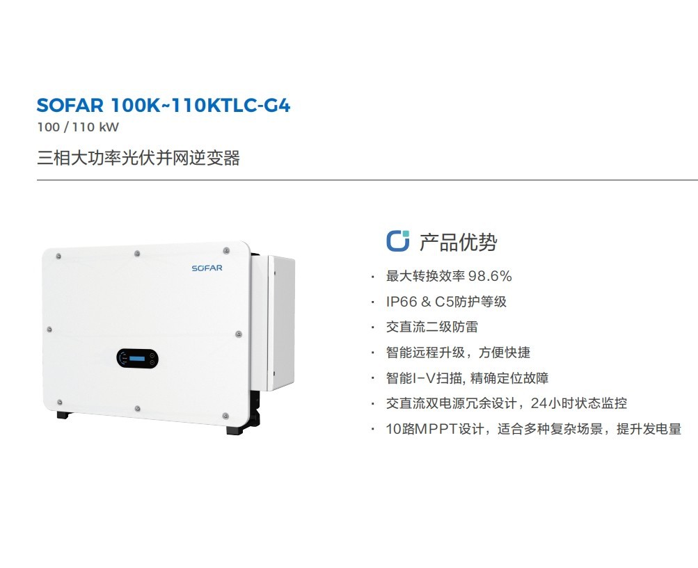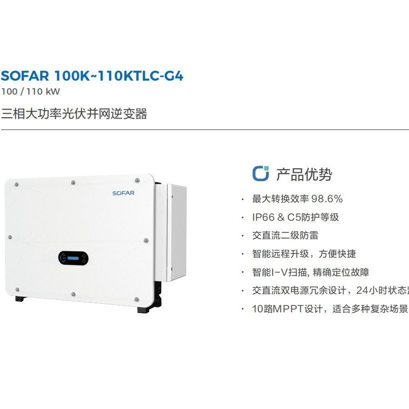 Инвертор солнечной фотоэлектрической системы SOFA first flight new energy SOFAR 100-110KTLC G4, трехфазный, сетевой