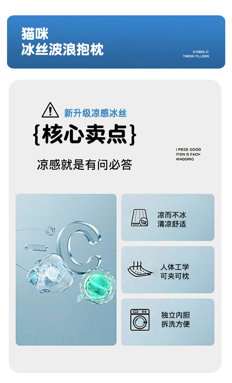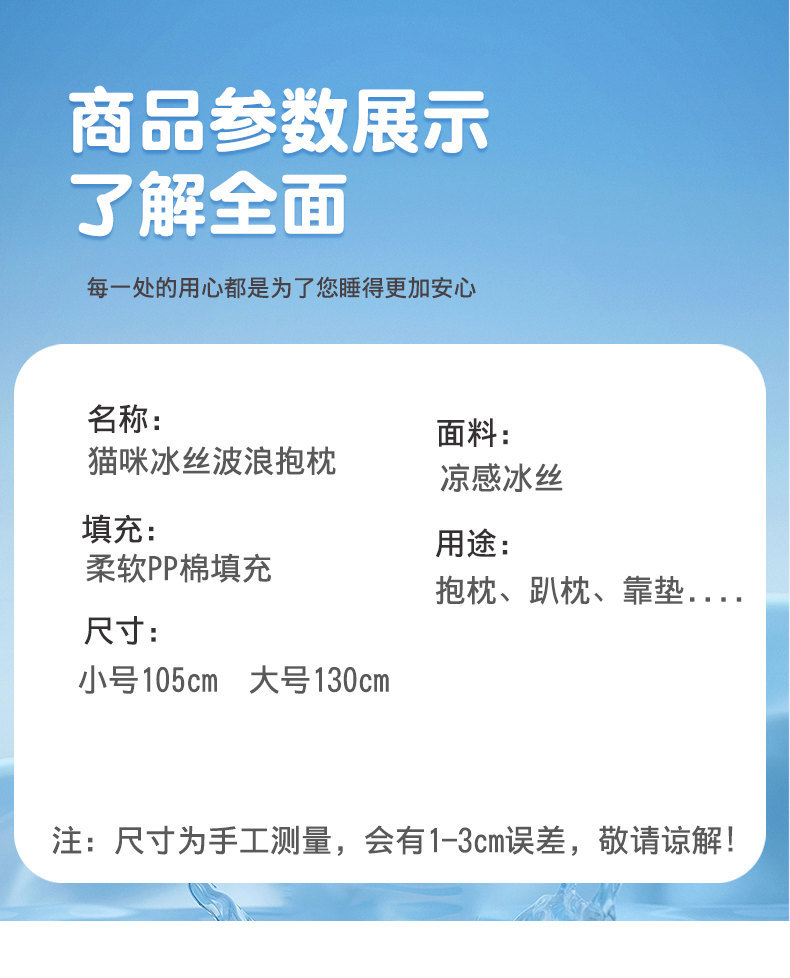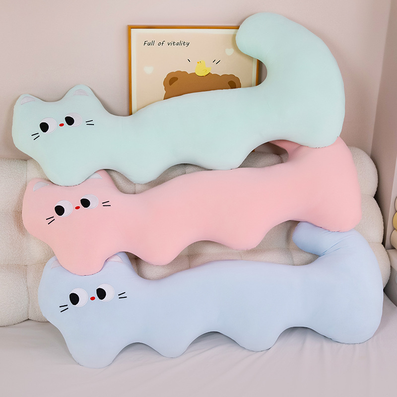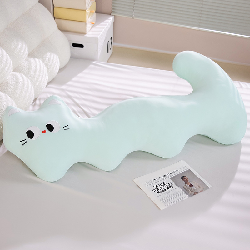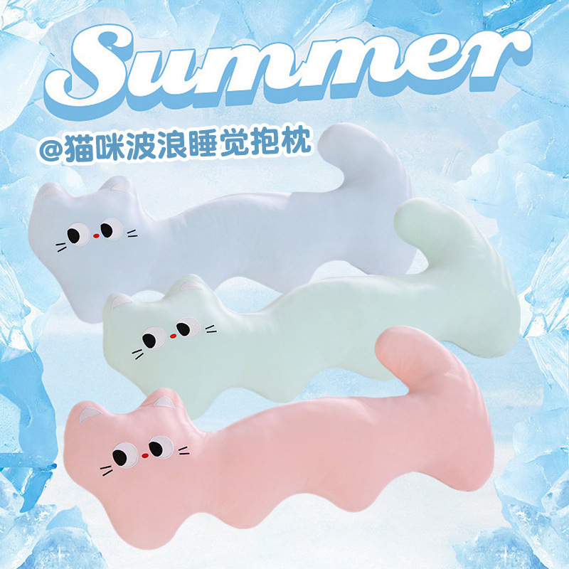 Летняя подушка из ледяного шелка с кошачьей волной, крутая длинная подушка, подушка для сна для девочек, спинка, зажим для ног для сна сбоку, артефакт