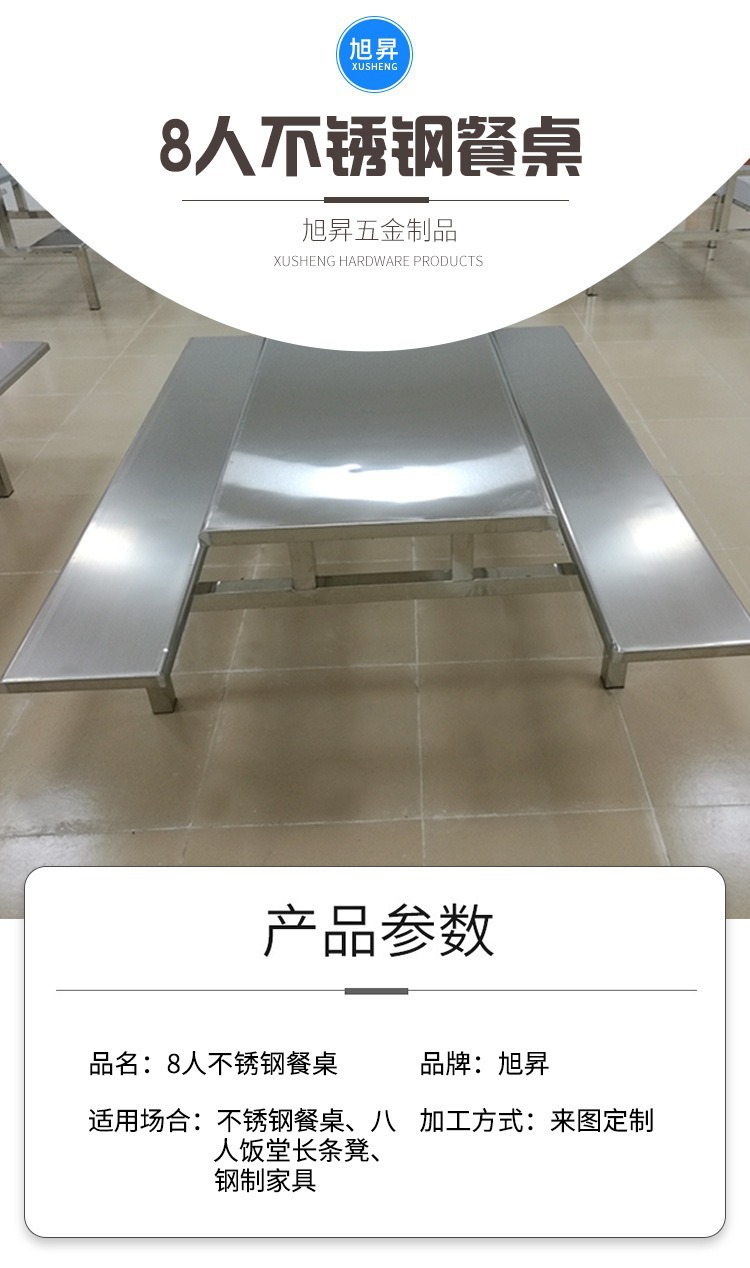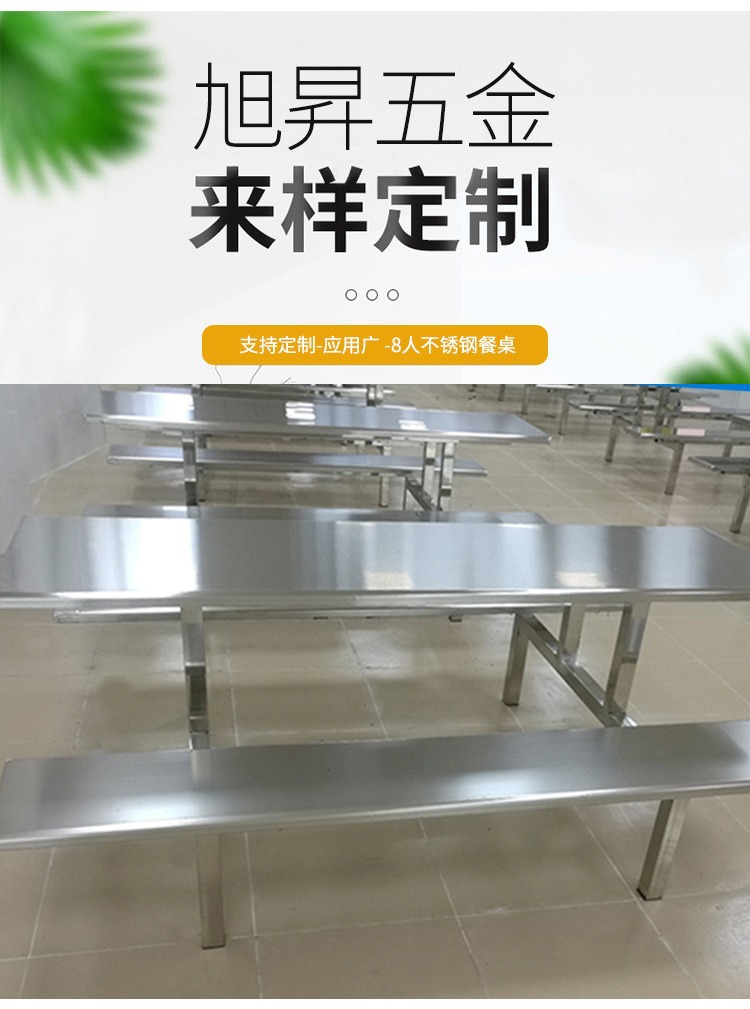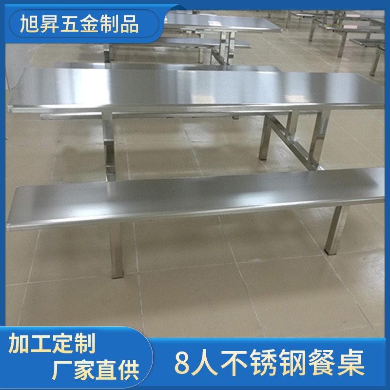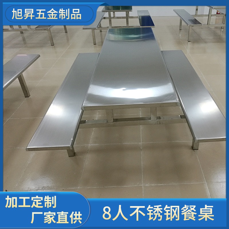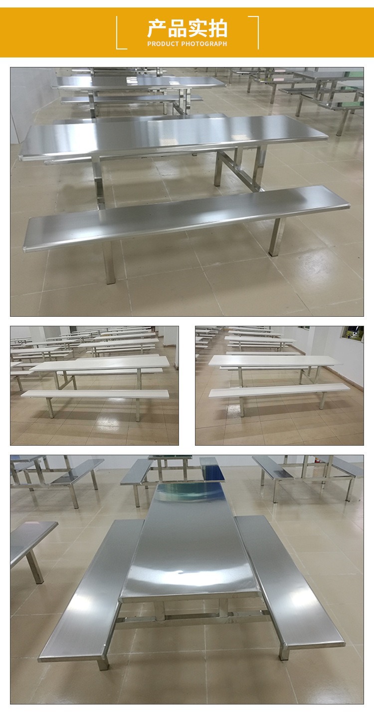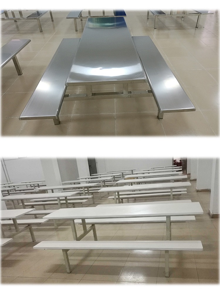 Обеденный стол и стулья из нержавеющей стали на 4 и 8 человек, школьный ресторан, обеденный стол в студенческой столовой, цельный стол для сотрудников заводского цеха.