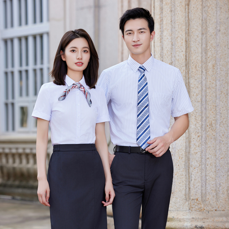 Новая стильная полосатая рубашка без глажки с коротким рукавом для работы, унисекс рубашка с длинным рукавом для профессионального костюма