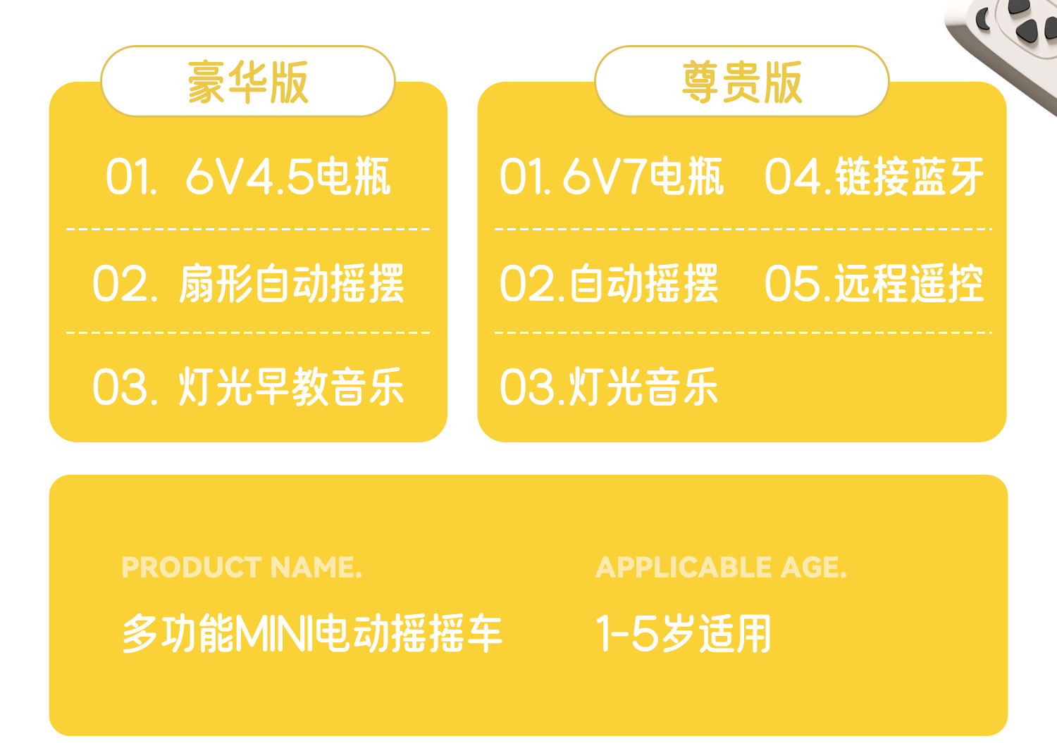 Делюкс-версия-лимонно-желтый-аккумулятор 6В4.5; Делюкс-версия-Наика-6В4.5 аккумулятор; Премиум-версия - лимонно-желтый - аккумулятор 6В7 + Bluetooth + пульт дистанционного управления; Премиум версия - Milk Cafe - аккумулятор 6V7 + Bluetooth + пульт дистанционного управления; Премиум версия - Milk Cafe - аккумулятор 6В7 + Bluetooth + пульт + детская ручка для ходьбы; Премиум версия - лимонно-желтый - аккумулятор 6В7 + Bluetooth + пульт + детская ручка для ходьбы