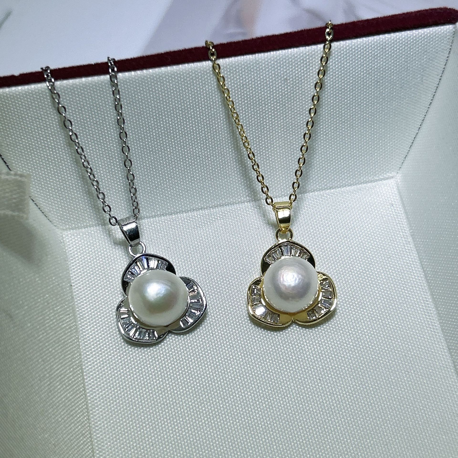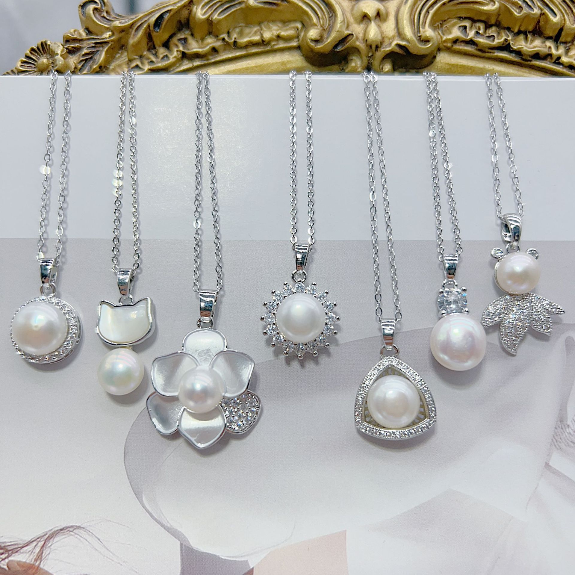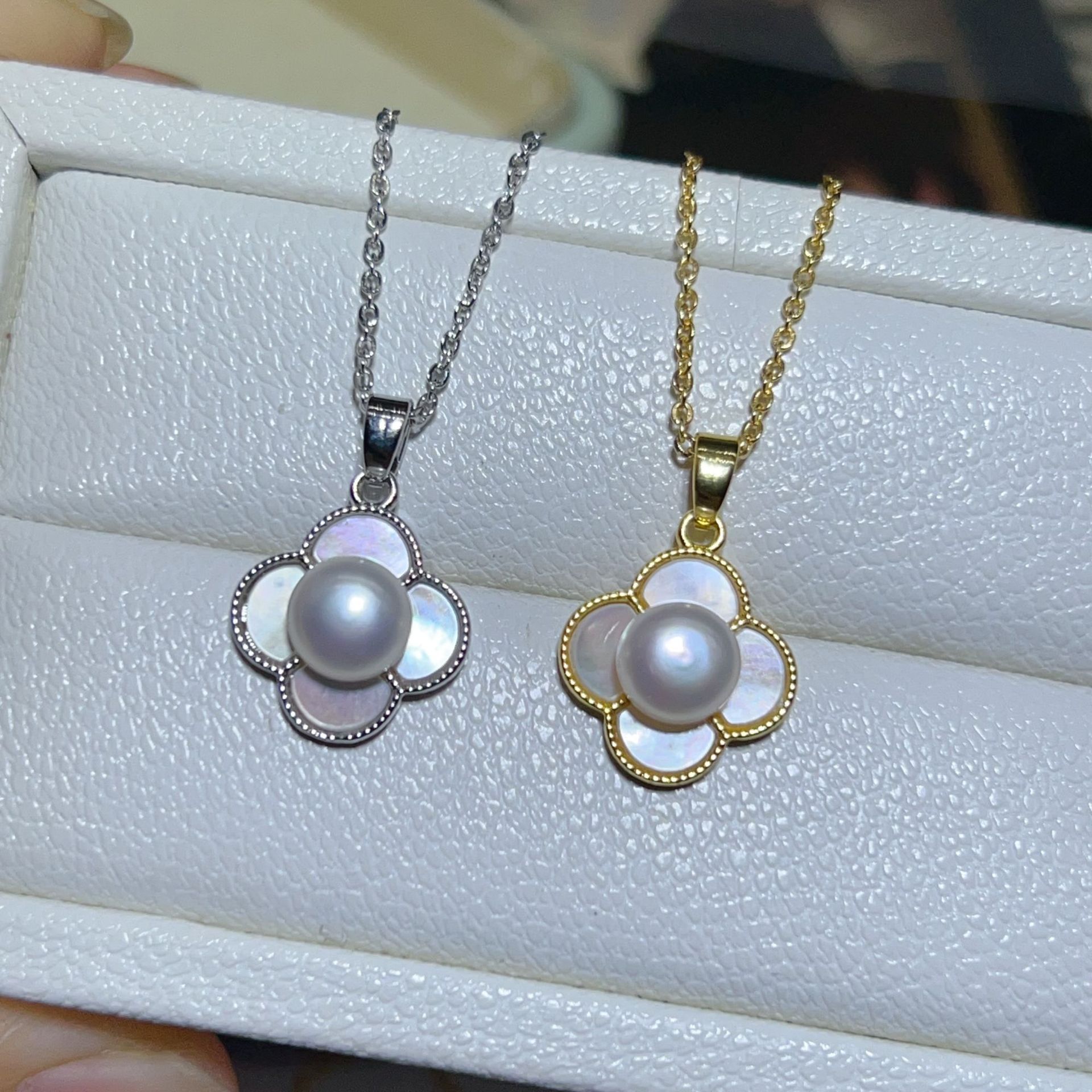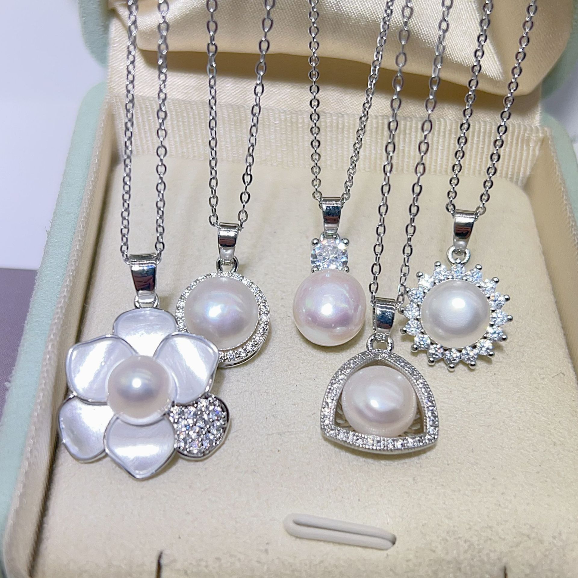 Серебряное колье с белым жемчугом; Ожерелье с белым жемчугом и золотым дном