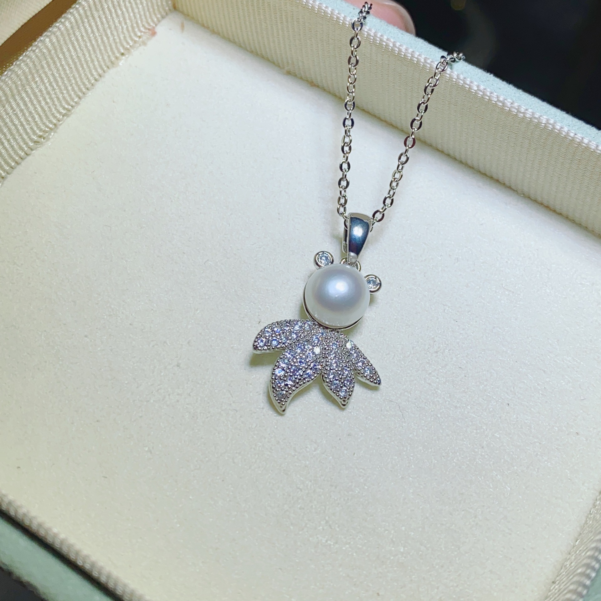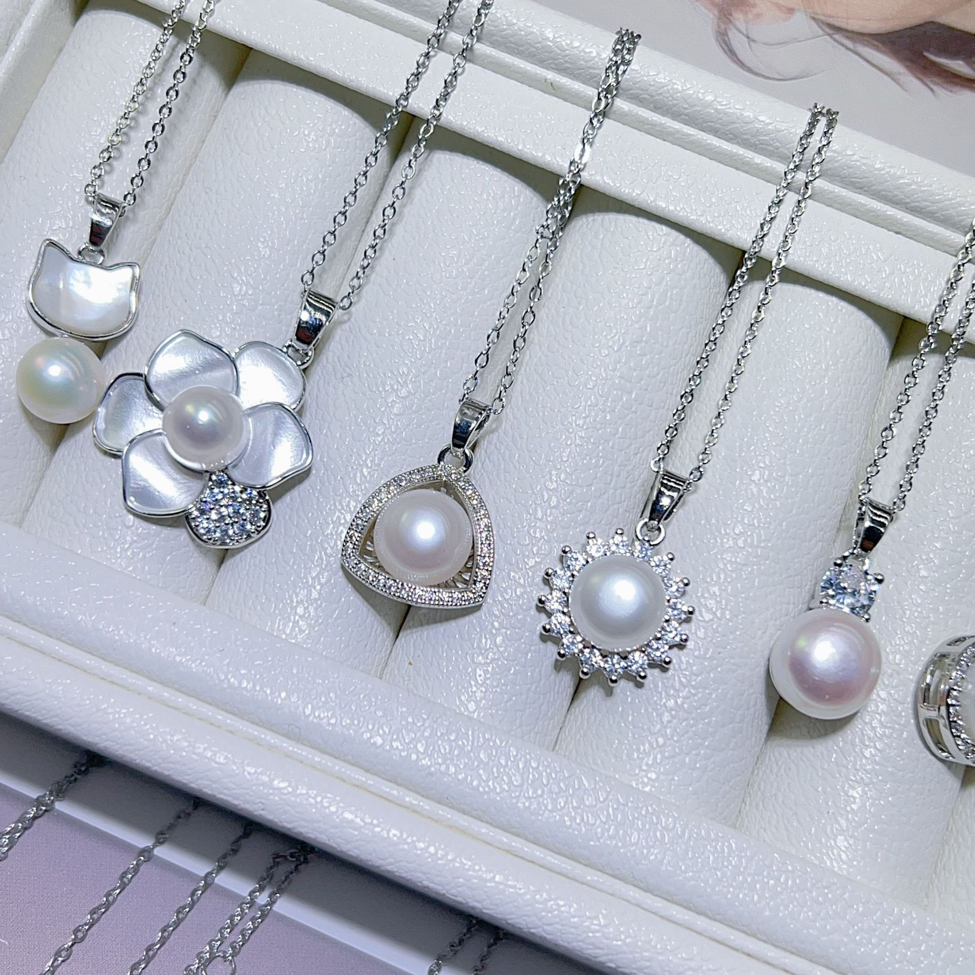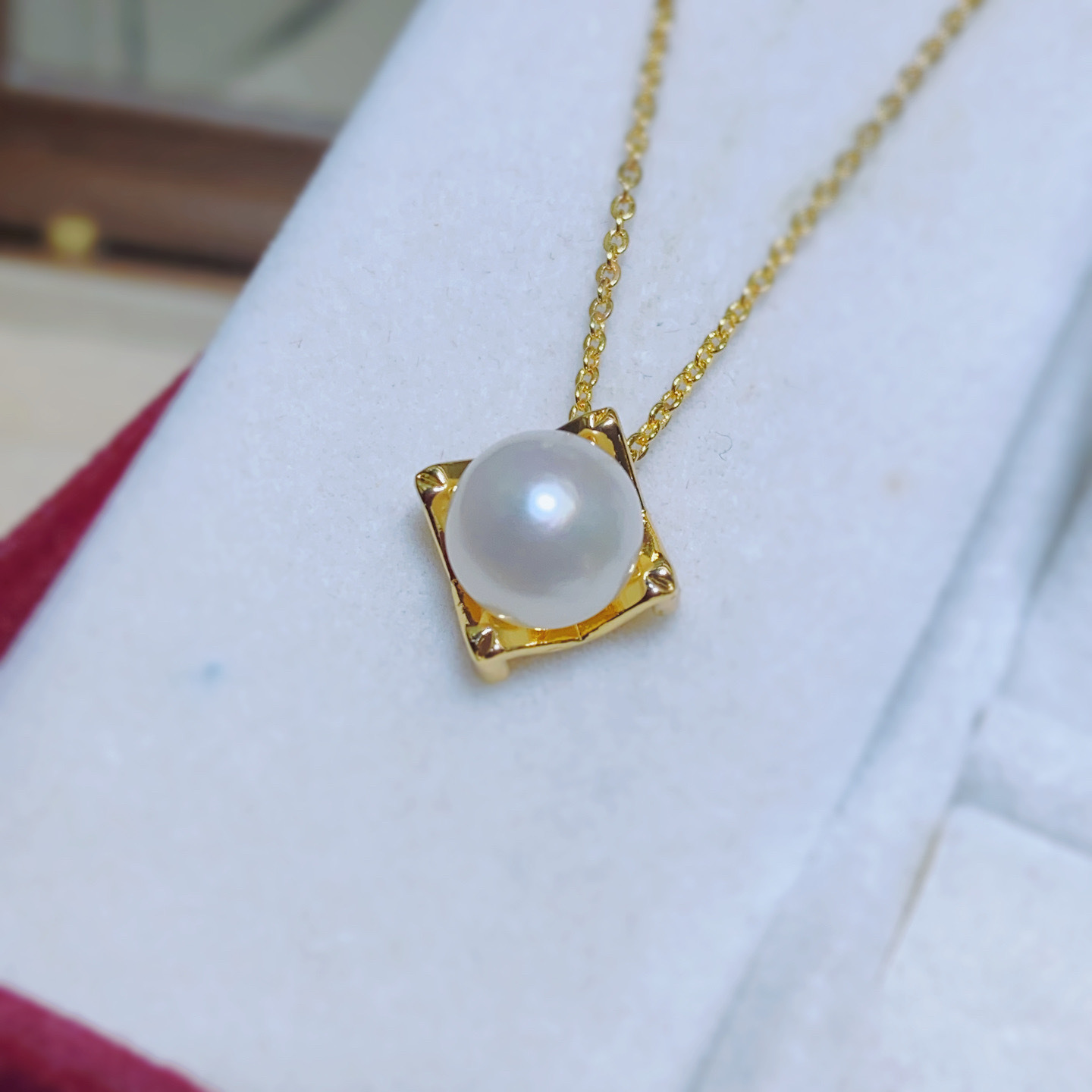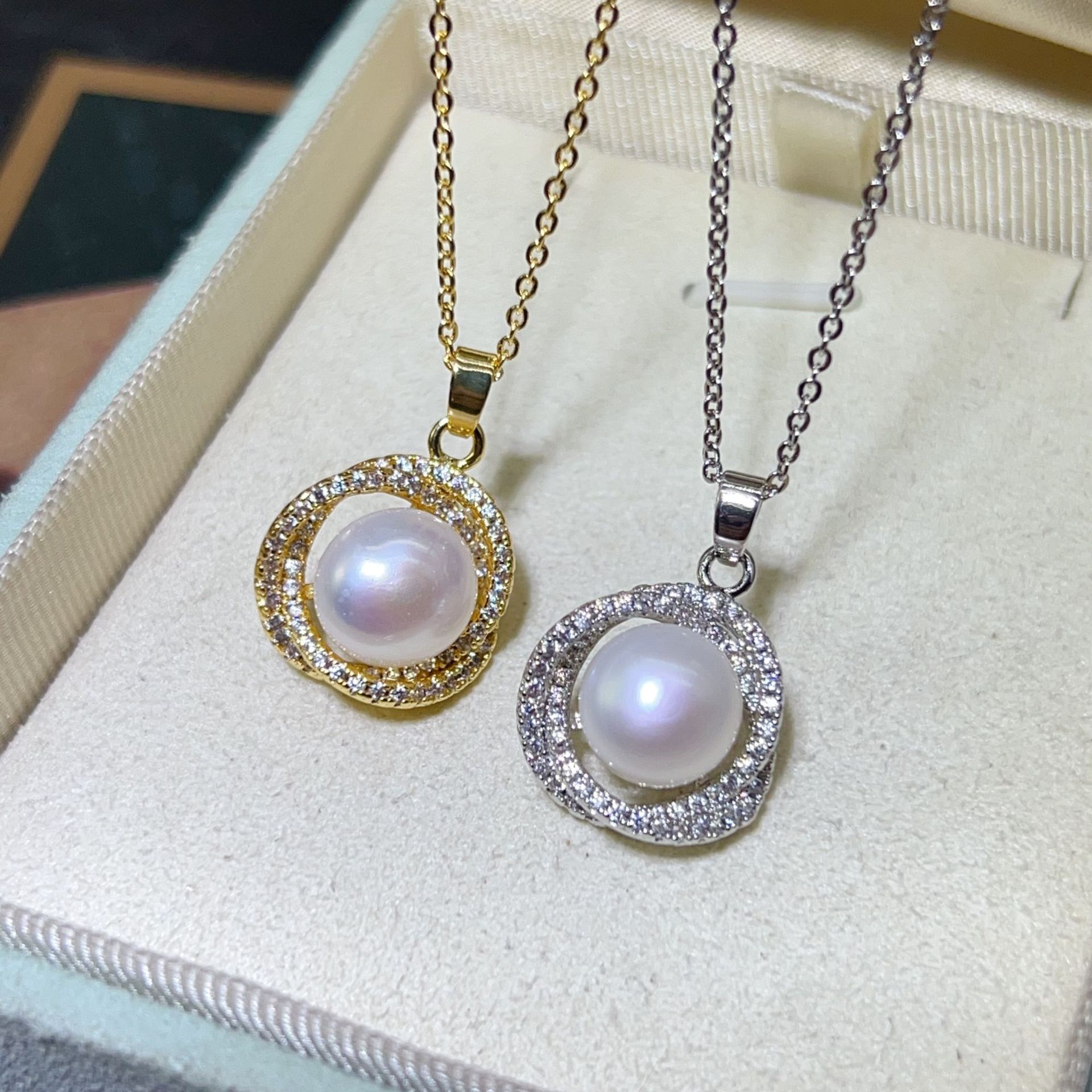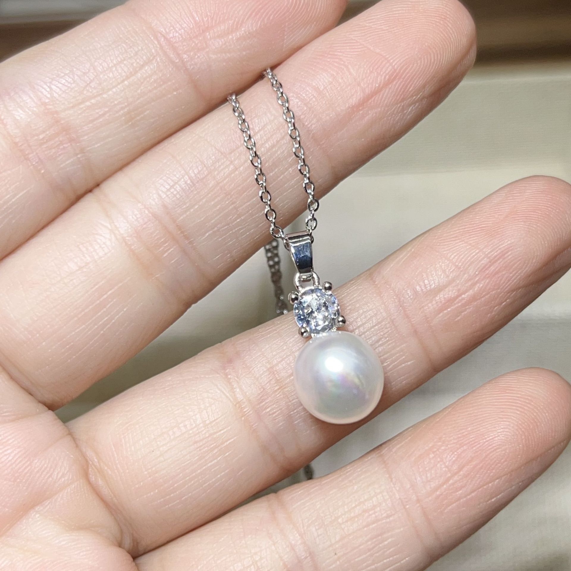 Серебряное колье с белым жемчугом; Ожерелье с белым жемчугом и золотым дном