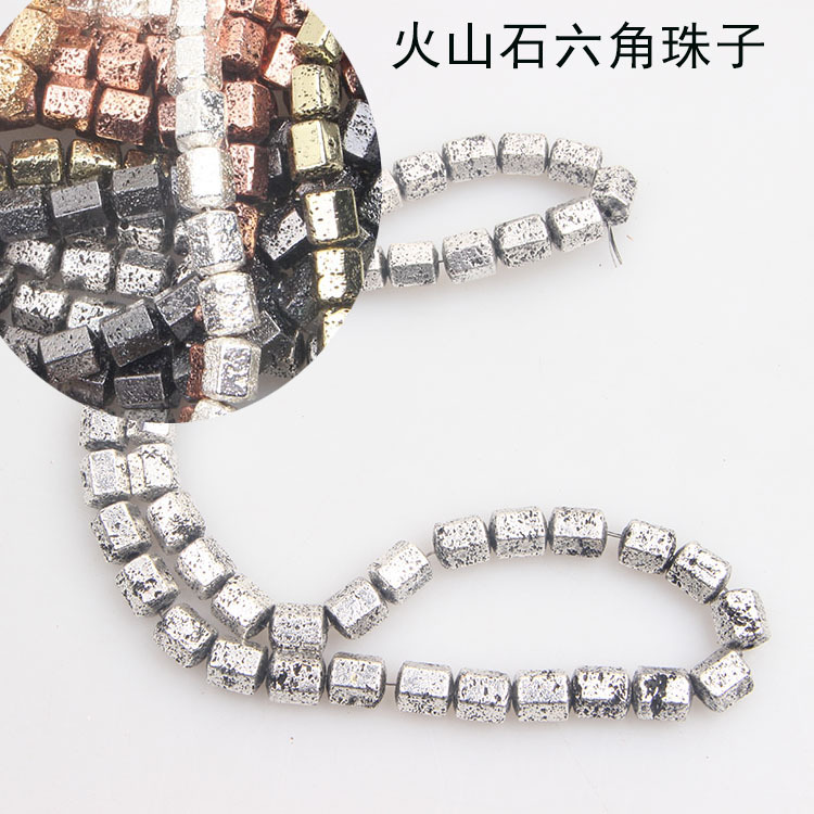 Трансграничная поставка полуфабрикатов из вулканического камня, свободные бусины, шестиугольные многоцветные браслеты с водным покрытием, ювелирные изделия своими руками, аксессуары из бисера, оптовая продажа