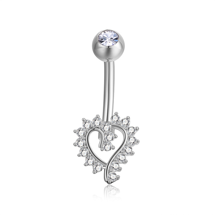 Европейские и американские простые и модные кольца для пирсинга пупка в форме сердца, инкрустированные цирконом, пряжка для пупка