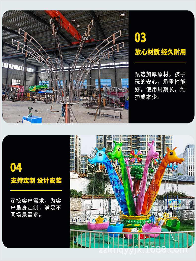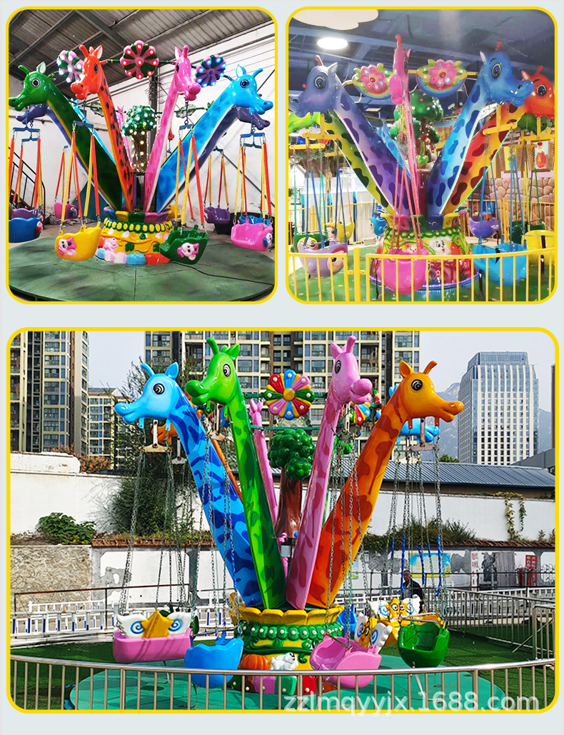 Детское аттракционное оборудование: Новая модель детского вращающегося аттракциона «Летающие стулья» в виде жирафа для улицы