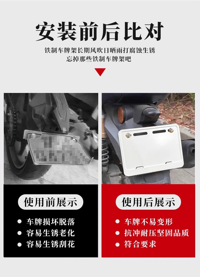 Рамка заднего номерного знака мотоцикла, рамка номерного знака, универсальная рамка для скутера, новые правила дорожного движения, алюминиевый сплав, утолщенный ярко-белый
