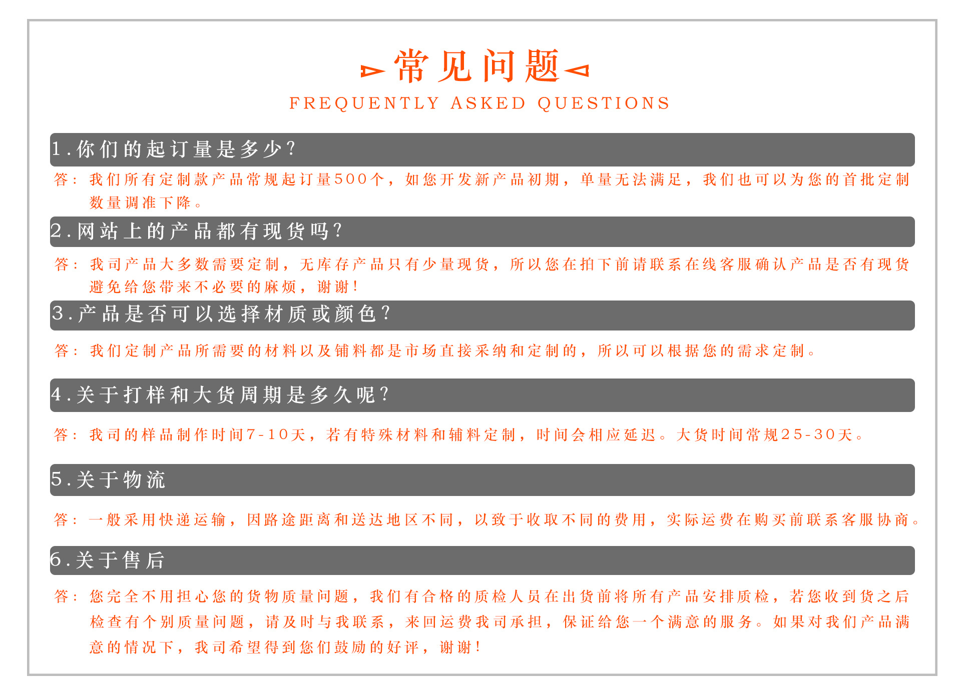 如需设计打样需要额外收取模具费用,具体可双方协商,公司现有的样板免费提供。