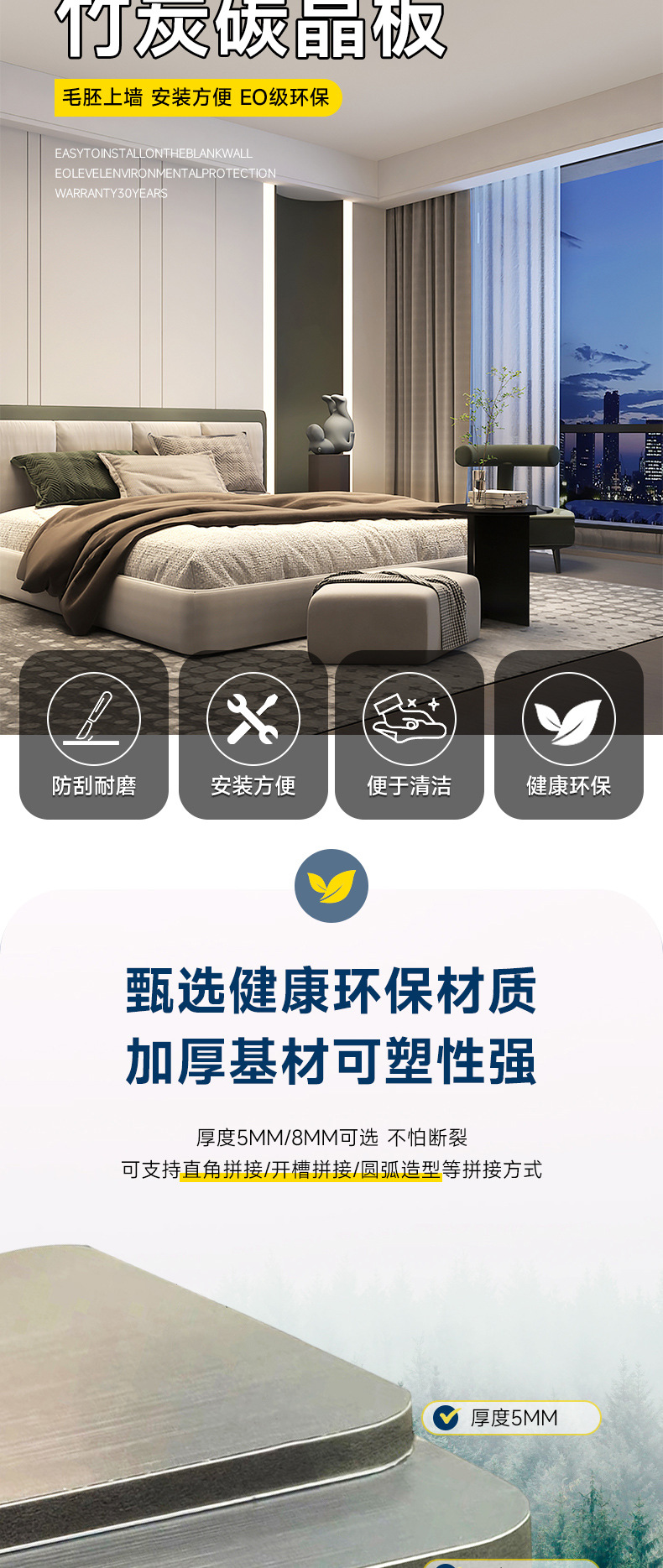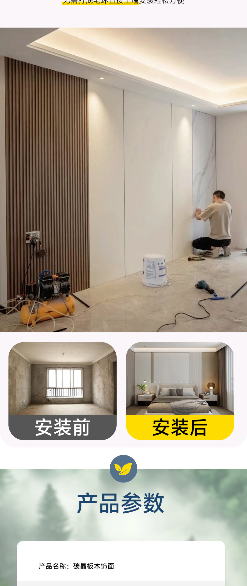 Настенная панель из древесного шпона, углеродная кристаллическая панель, внутренняя отделка, настенная панель, декоративная панель, фон для дивана, бесшовная панель из бамбукового угольного волокна