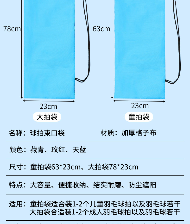 Сумка для ракеток для бадминтона темно-синего цвета 78+23 см; Темно-синяя сумка для ракеток для бадминтона 63*23 см.; Розово-красная сумка для ракеток для бадминтона 78*23 см; Розово-красная детская сумка для бадминтонной ракетки 63*23 см; Небесно-голубая сумка для ракеток для бадминтона 78*23 см.; Синяя сумка для ракеток для бадминтона 63*23 см.