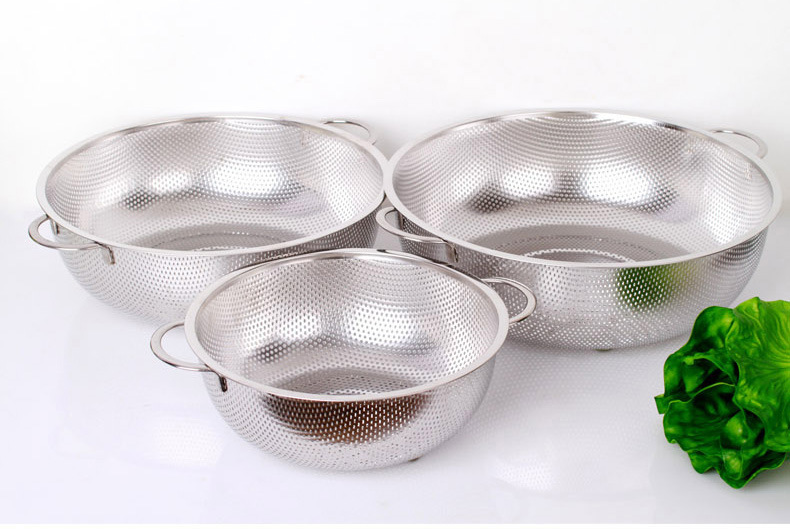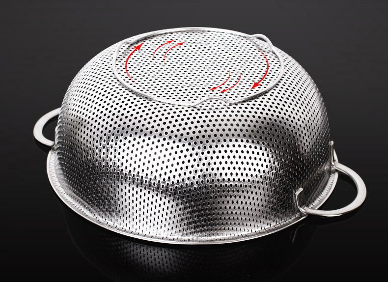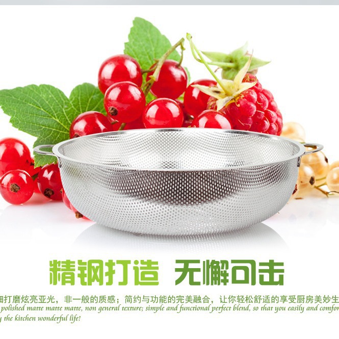 Сливная корзина из нержавеющей стали с двумя ручками, углубленная раковина для мытья риса, мелкоячеистая раковина для мытья риса, универсальная фруктовая раковина с отверстиями.