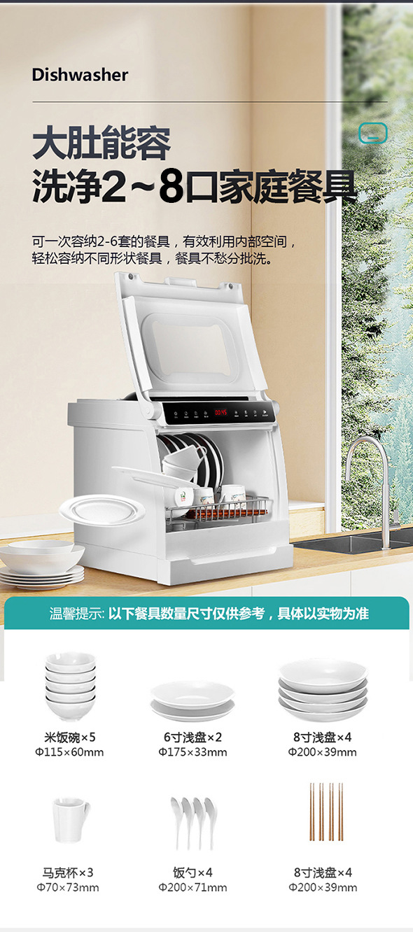 Кросс-граничный экспортный посудомоечный автомат для дома, настольный, без установки, большой емкости, полностью автоматический, мини, компактный, с функцией сушки и дезинфекции