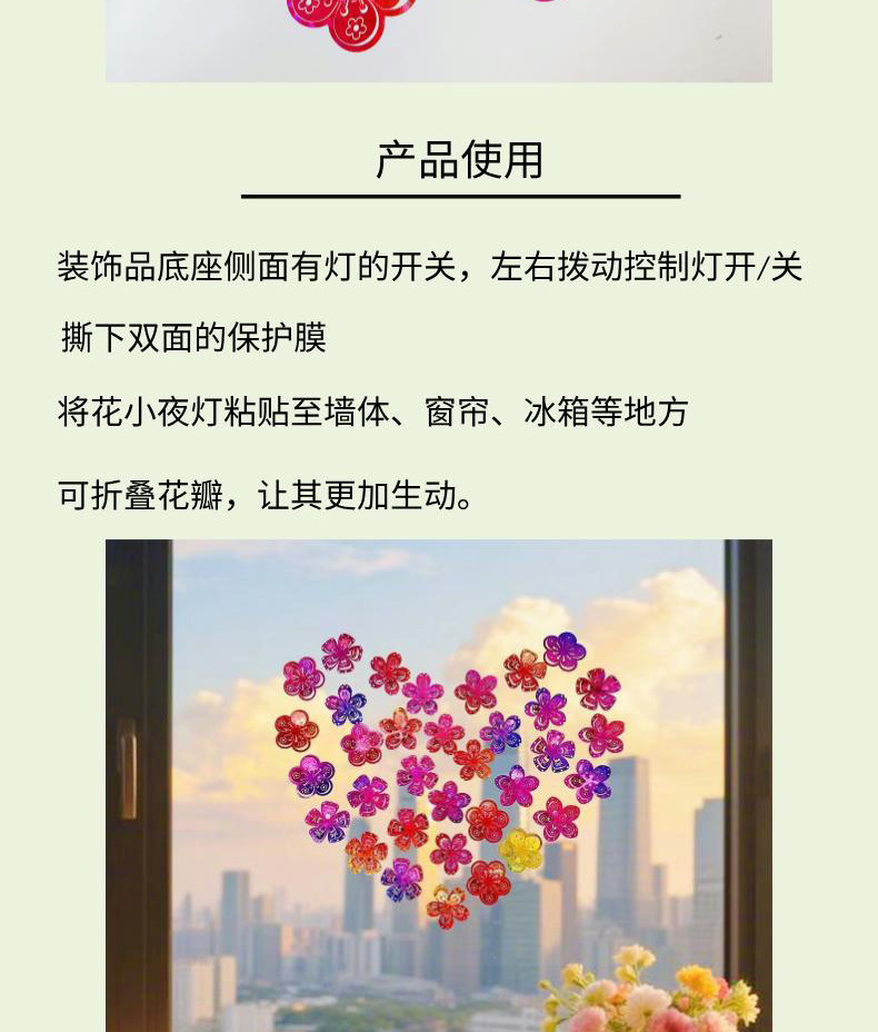 Светящийся ночник в виде цветка с вырезами и разноцветной подсветкой, можно использовать как 3D-стерео светящийся цветочный стикер для современного стерео-декора.