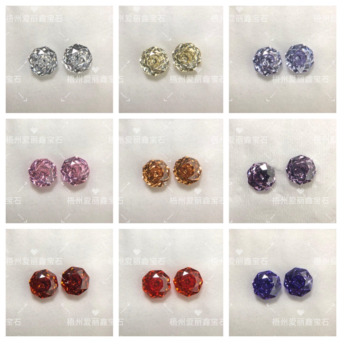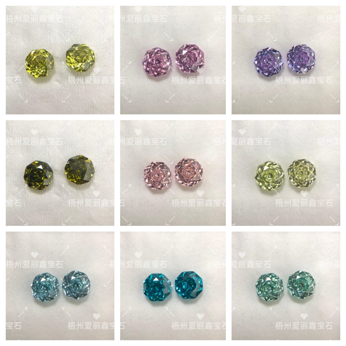белый цирконий; розовый; шампанское; Китайский красный; Станьте синим; гранатово-красный; фиолетовый синий; фиолетовый; оливково-желтый; оливково-зеленый; светло-розовый; Гусь желтый; розово-красный; фиолетовый; Дорогая оливково-зеленая; фруктовый зеленый; Падпарадша; светло-морской синий; морское синее; параиба зеленый