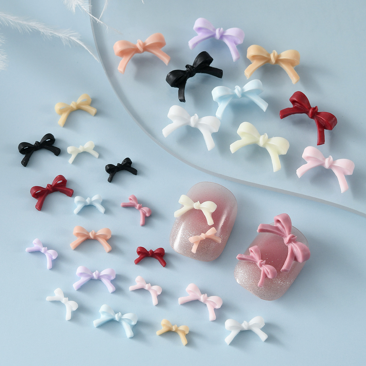 Модные мини-бантики для нейл-арта, аксессуары смешанных цветов, большие и маленькие бантики из смолы, шпильки для ногтей, украшение для чехла для телефона