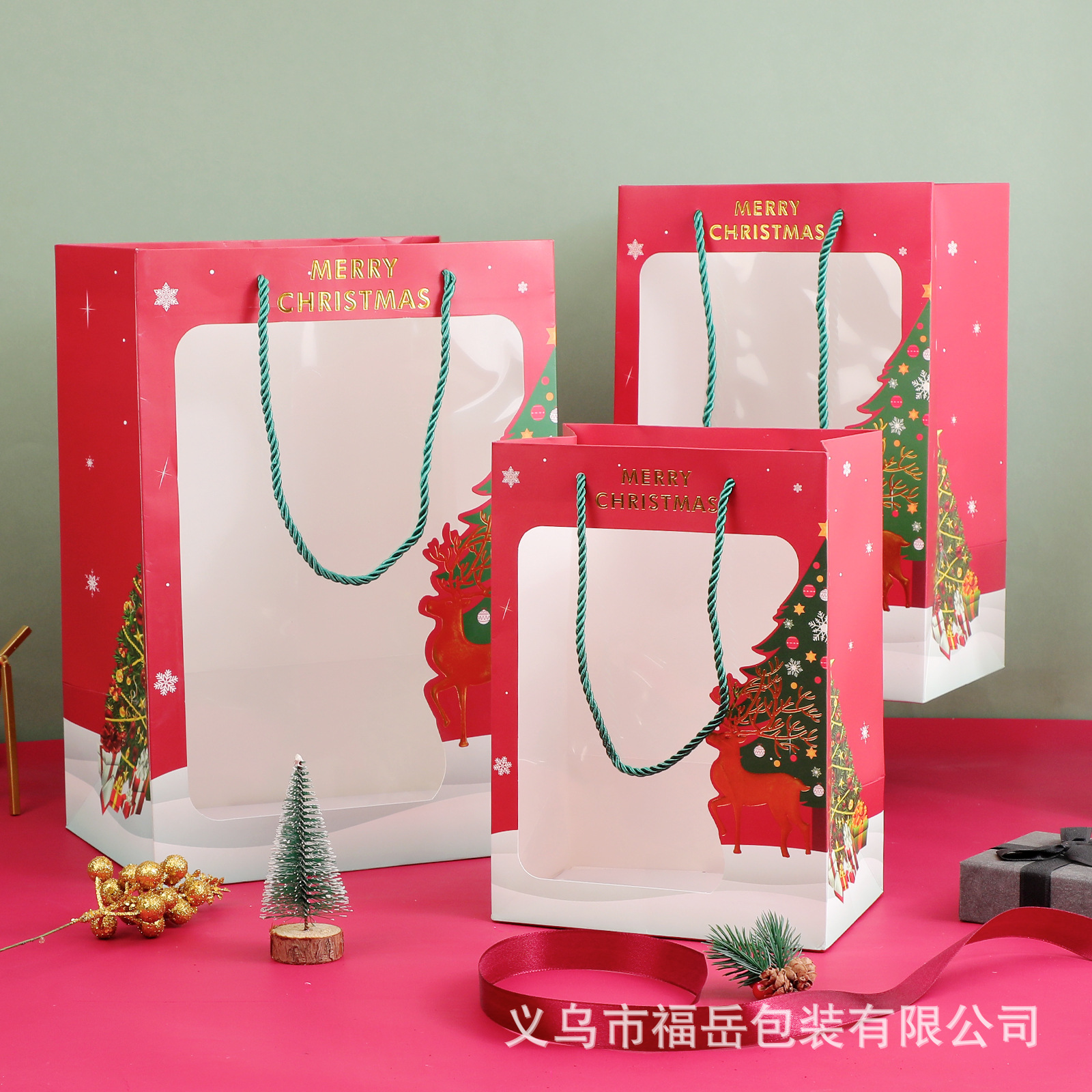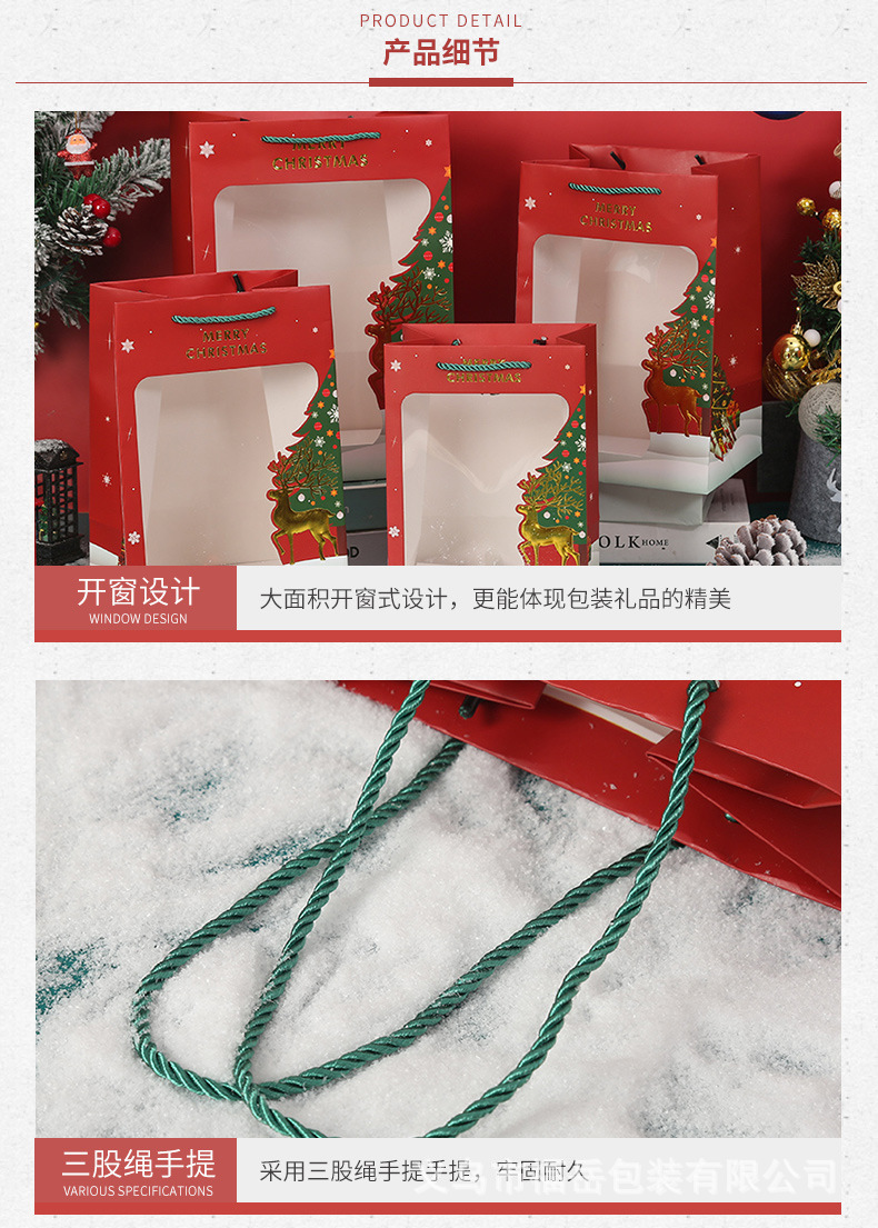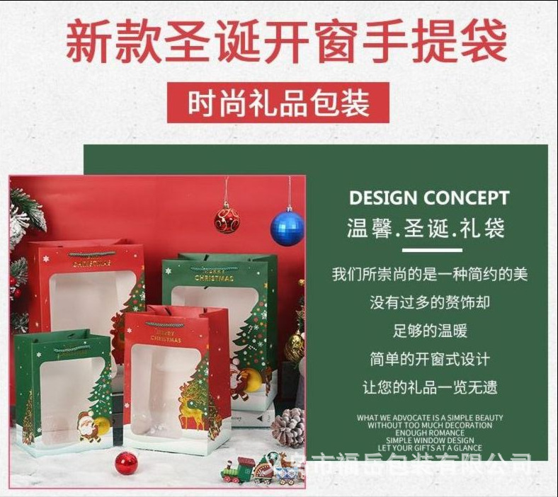 Новые подарочные пакеты на Рождество, пакеты для упаковки яблок на Сочельник, пакеты для конфет, прозрачные пакеты с окном, готовы к оптовой продаже
