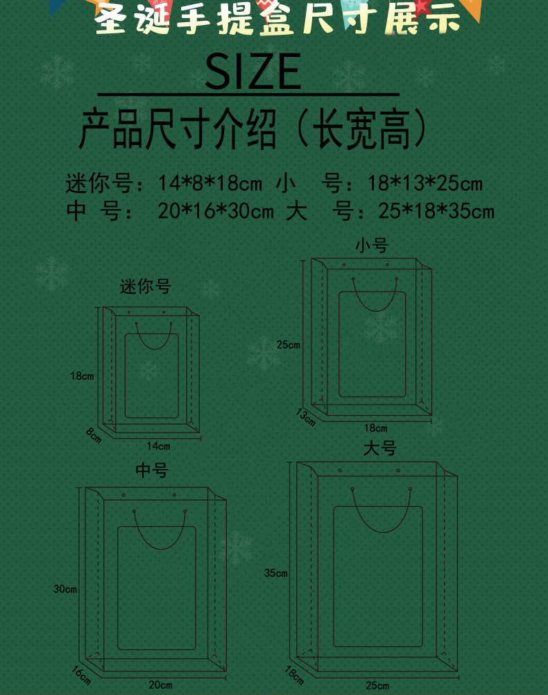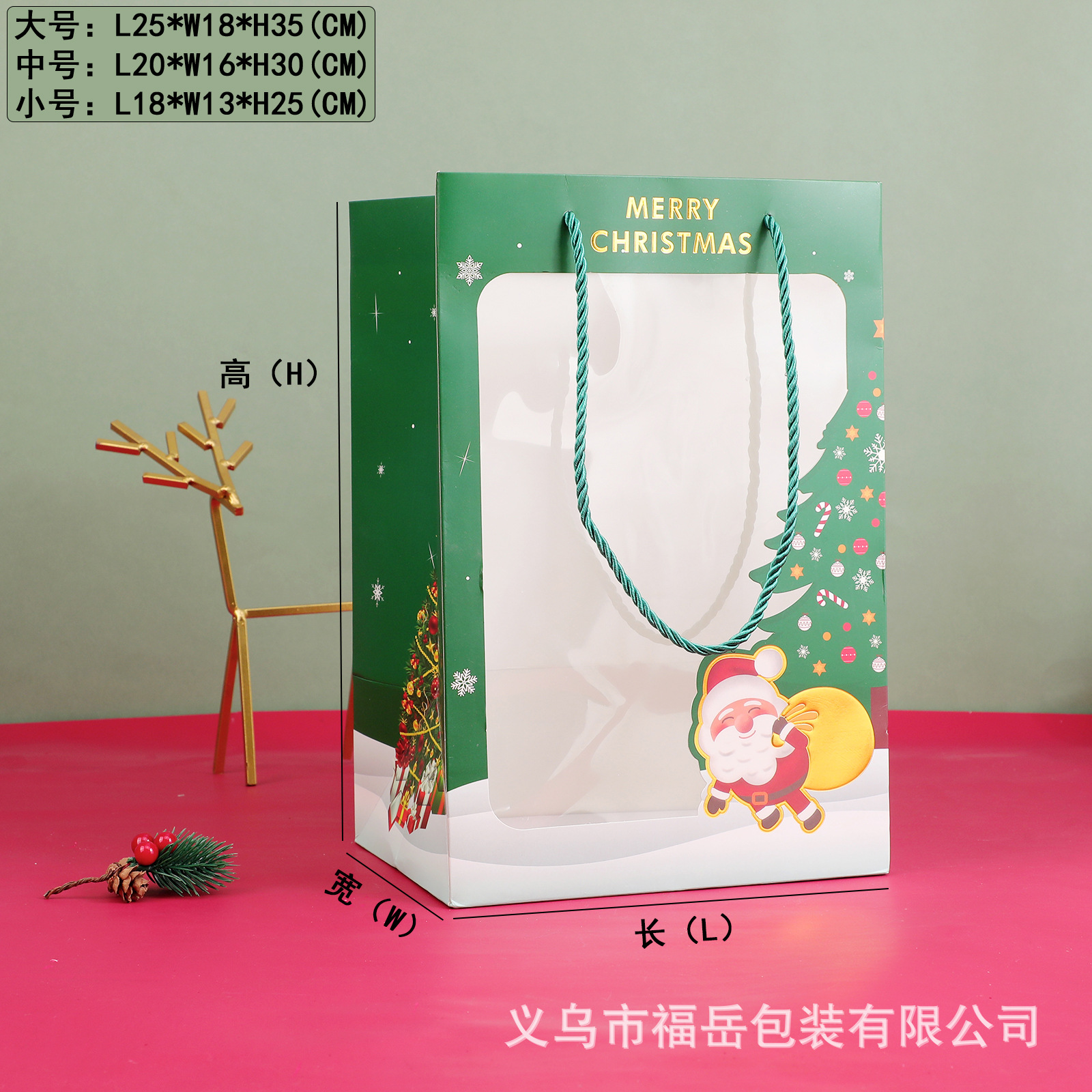 Зеленый Санта-Клаус; небольшой размер (18*13*25 см); Зеленый Санта-Клаус; Средний размер (20*16*30 см); Зеленый Санта-Клаус; Большой размер (25*18*35 см); Красный рождественский лось; Маленький (18*13*25 см); Красный рождественский лось; Средний (20*16*30 см); Красный рождественский лось; Большой размер (25*18*35 см); Красная модель; очень маленький размер (15*10*20 см); Красная модель; небольшой размер (18*13*25 см); Красная модель; средний размер (20*16*30 см); Красная модель; большой размер (25*15*35 см); Зеленый олень с горячим тиснением; мини-размер (14/8*18 см); Красный горячий штампующий колокольчик; мини-размер (14/8*18 см)