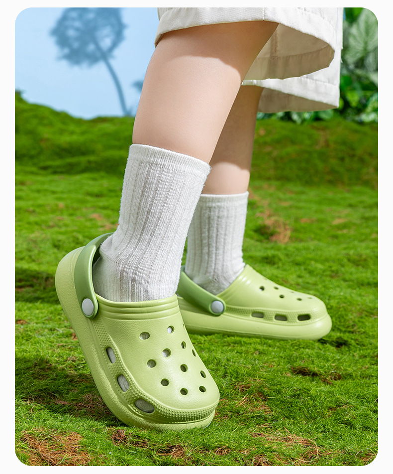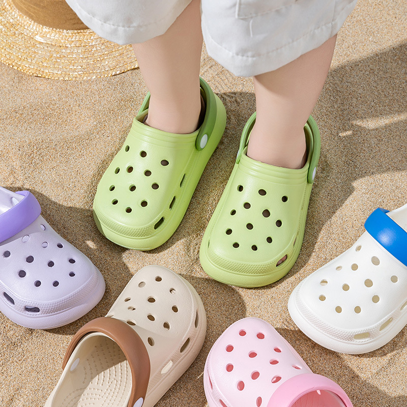 Простые однотонные детские сабо для девочек и мальчиков, летние уличные тапочки, пляжная обувь, закрытые сандалии для детей старшего возраста.