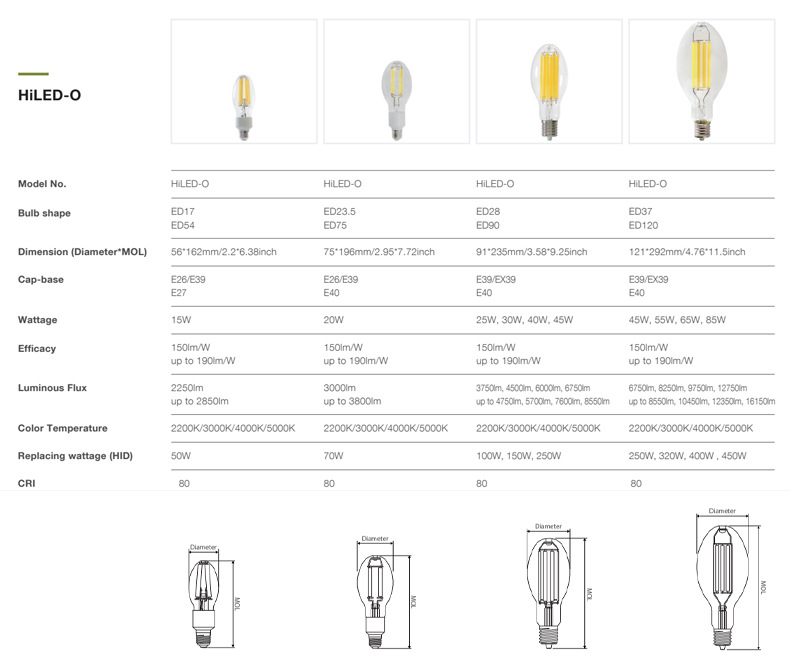 Светодиодная лампа HILED с высокой мощностью и нитевидным свечением заменяет традиционные HID-лампы, обеспечивая высокое качество и эффективность светоизлучения, 5-летняя гарантия.