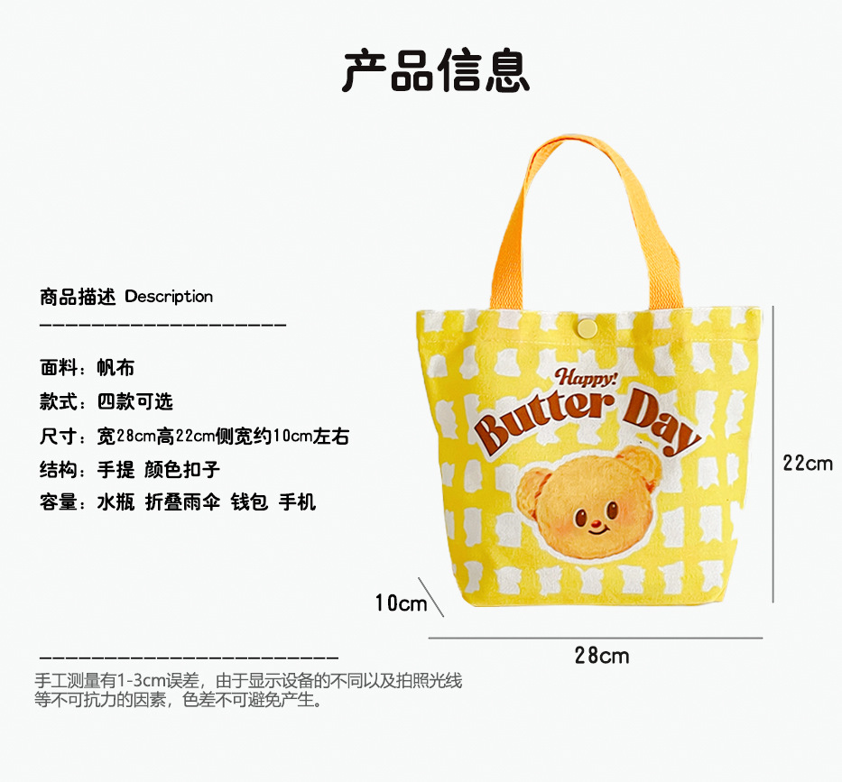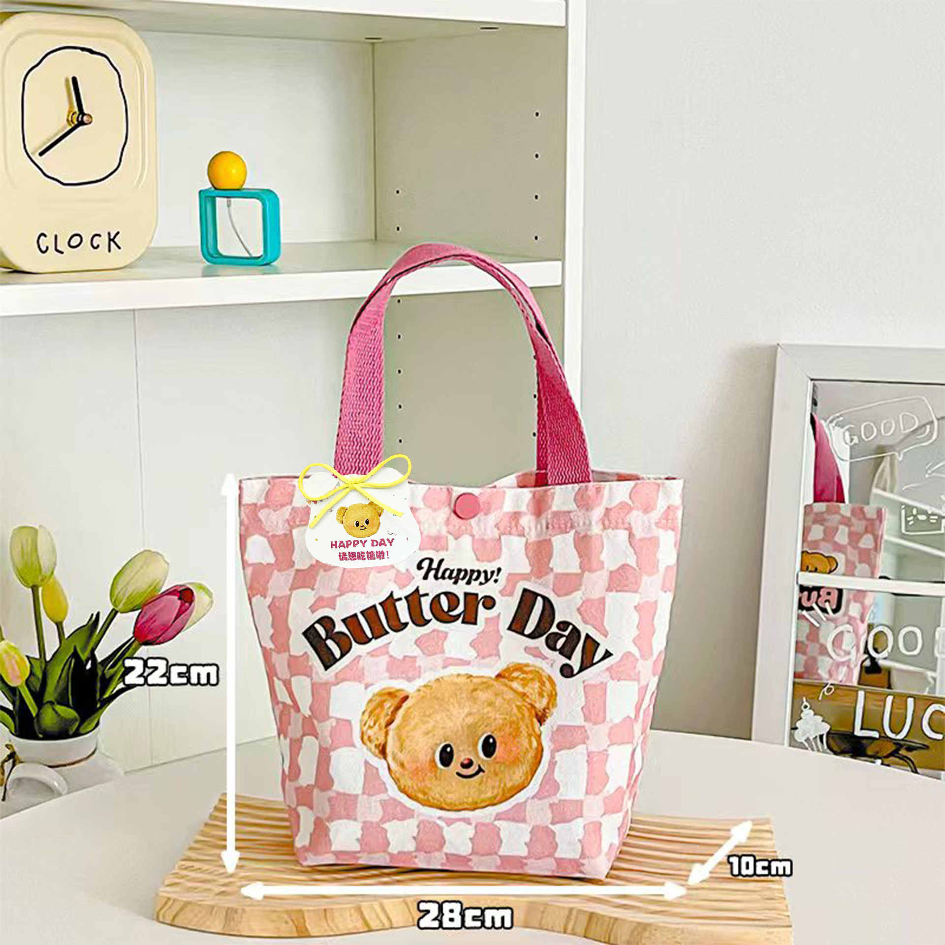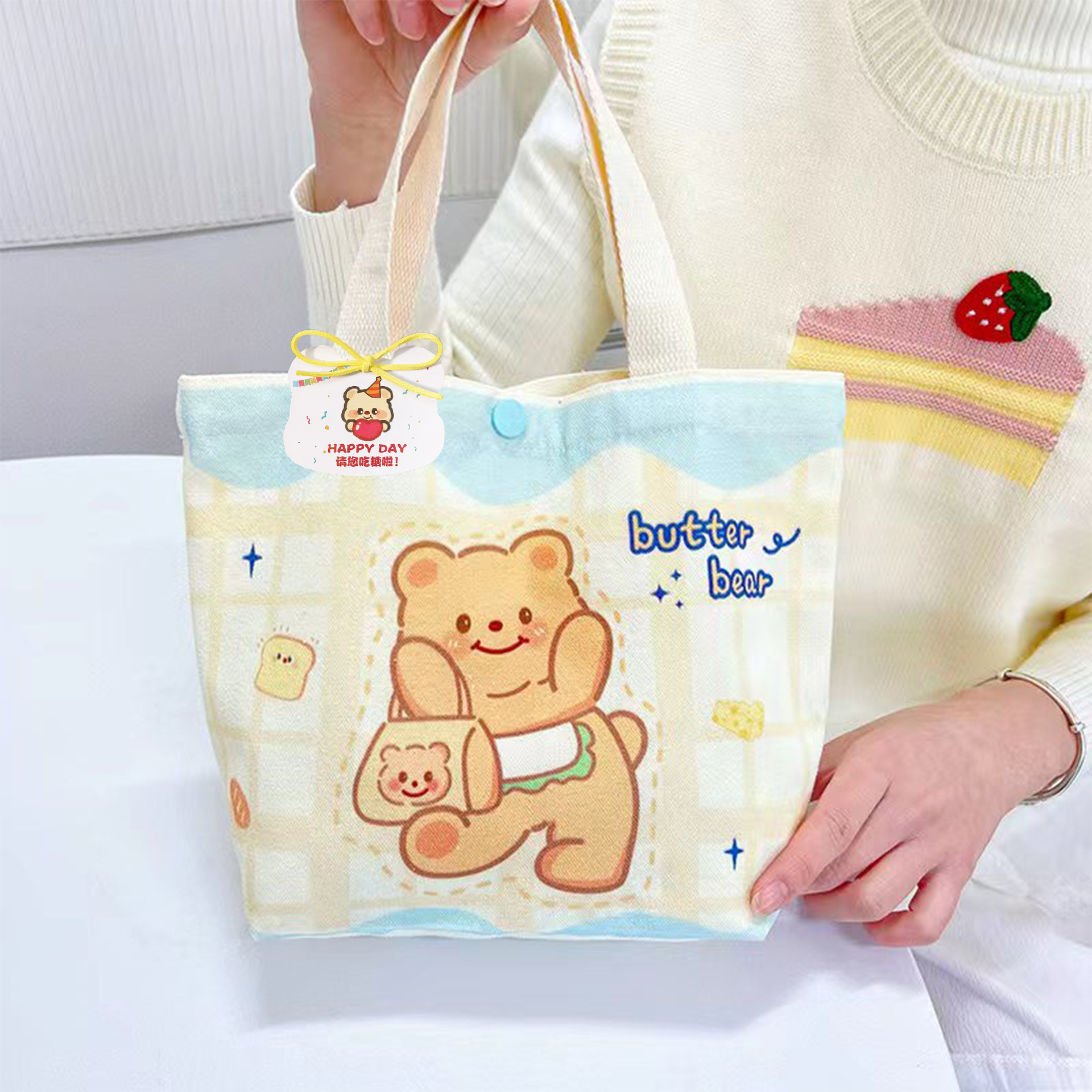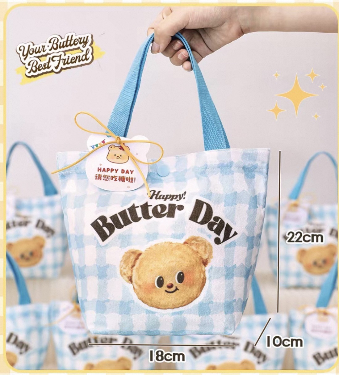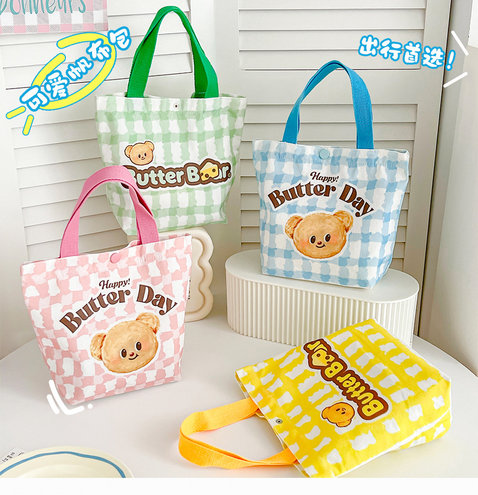 Новая модель 2025 года: подарочная сумка для детей Butter Bear, мультяшная холщовая сумка, женская сумка-тоут, для детского сада