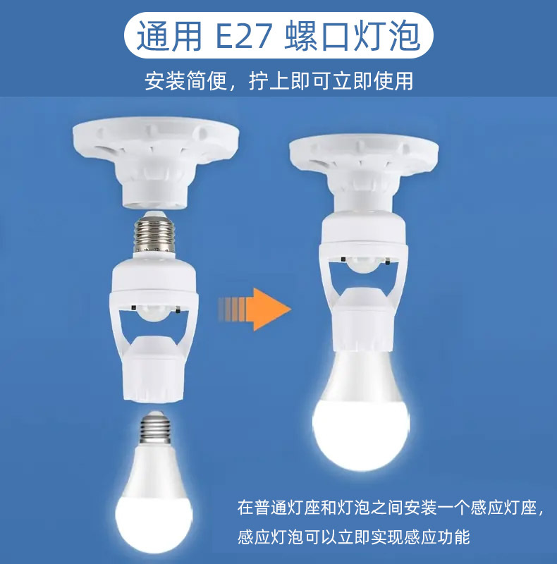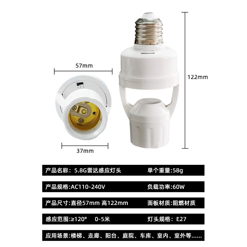 Держатель лампы с датчиком человеческого тела, регулируемый умный задержанный лестничный проход E27, винтовой тип 86, светодиодный радарный инфракрасный держатель лампы
