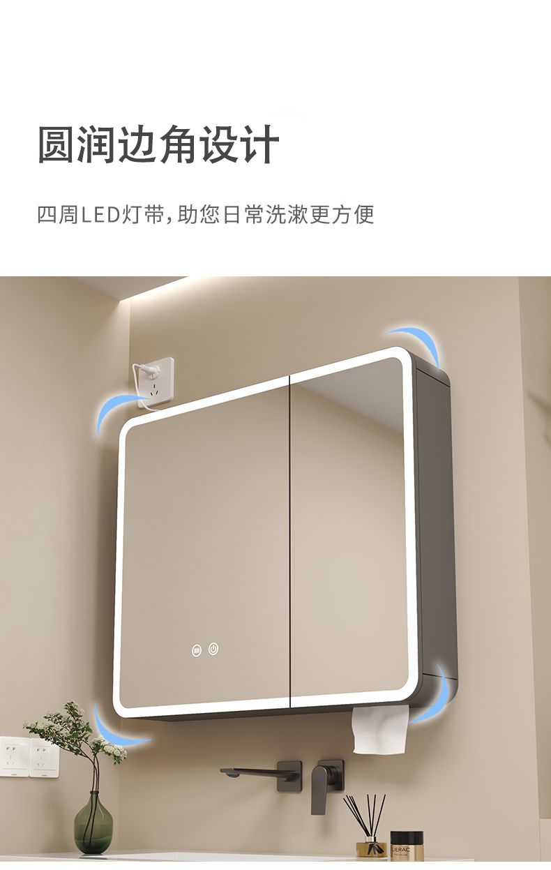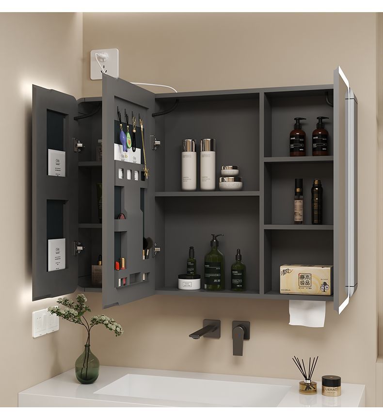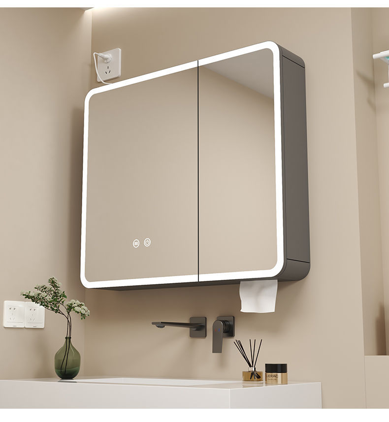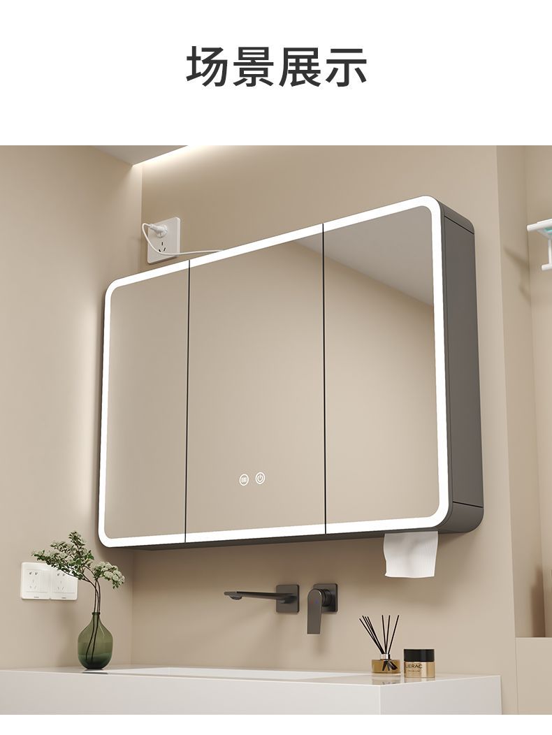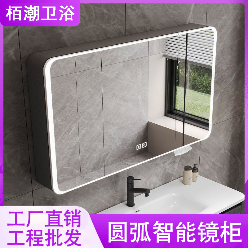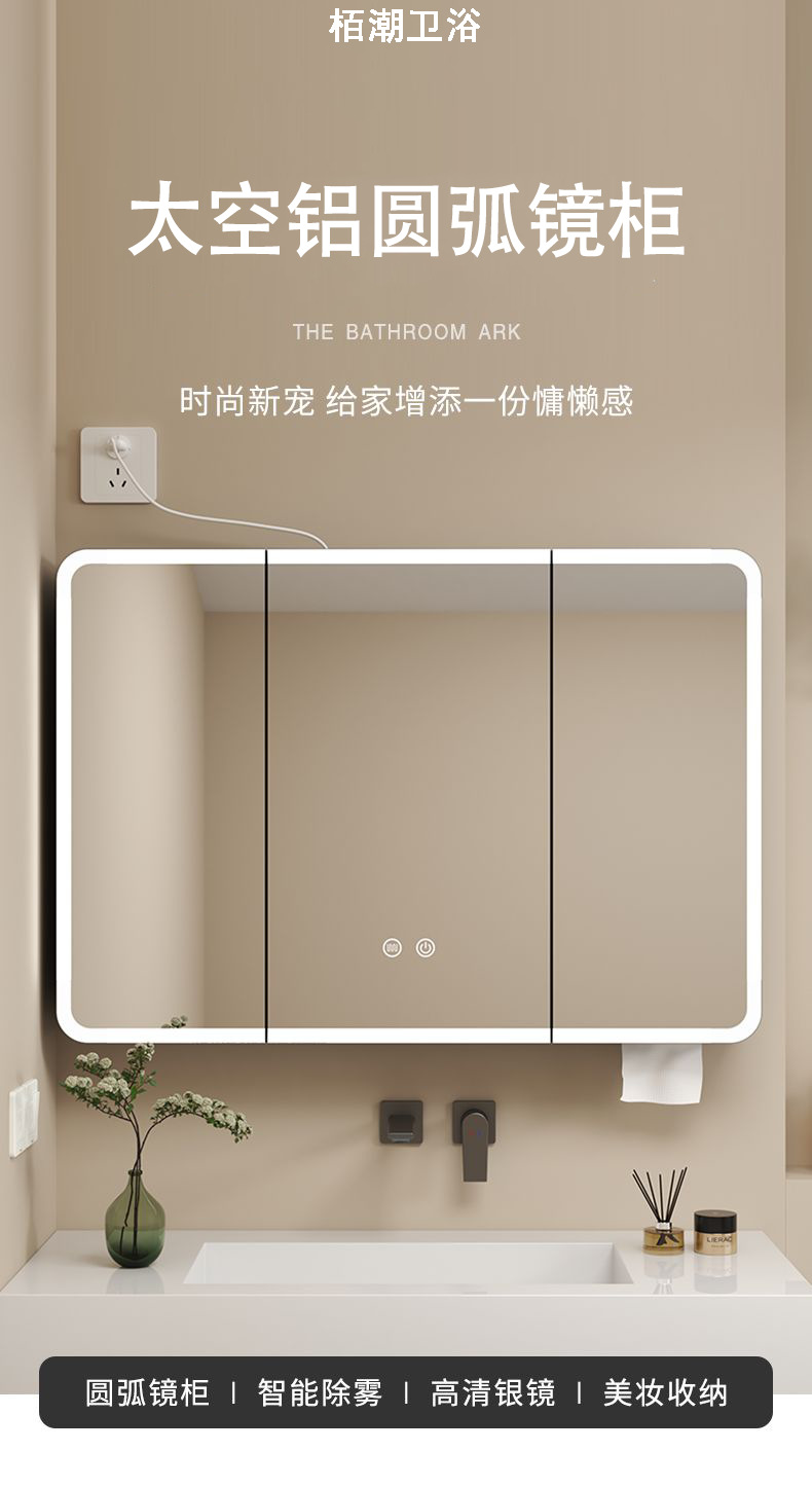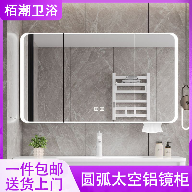 Утолщенный космический алюминиевый зеркальный шкаф с дугообразной формой, настенный умный светильник для ванной комнаты, зеркальный шкаф с защитой от запотевания, стеллаж для хранения красоты