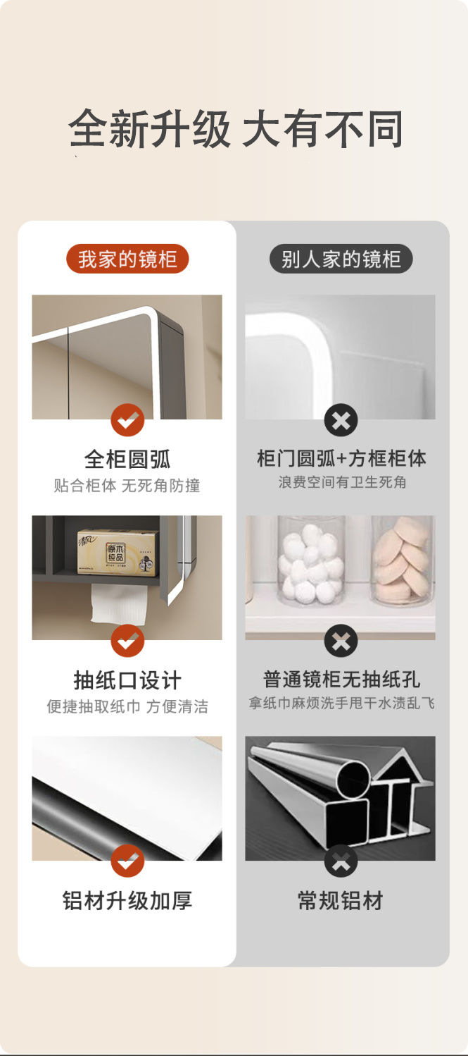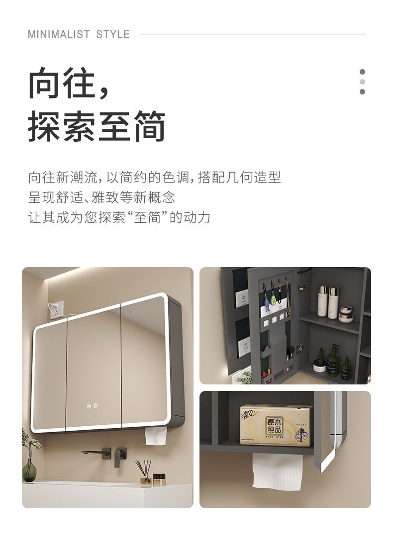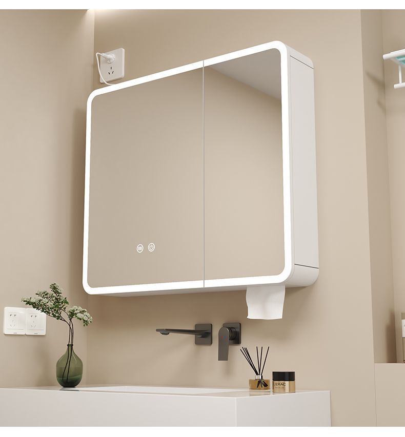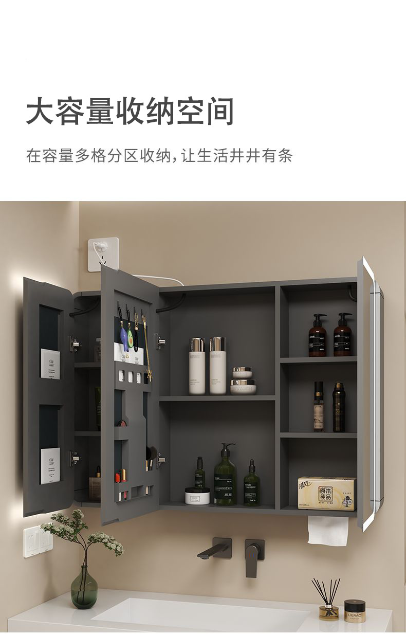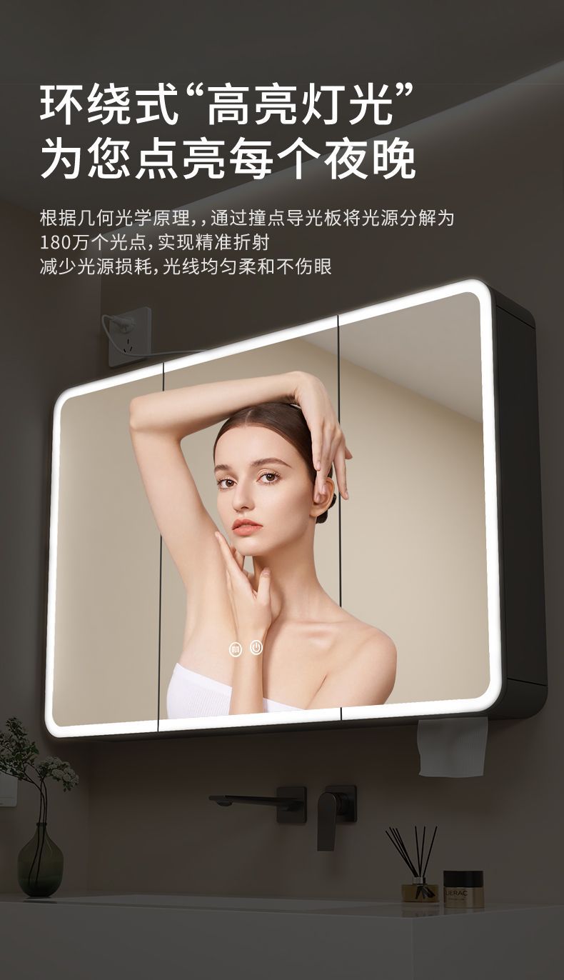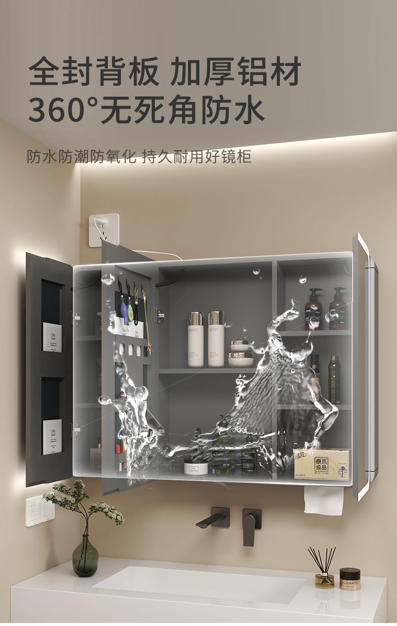 Утолщенный космический алюминиевый зеркальный шкаф с дугообразной формой, настенный умный светильник для ванной комнаты, зеркальный шкаф с защитой от запотевания, стеллаж для хранения красоты