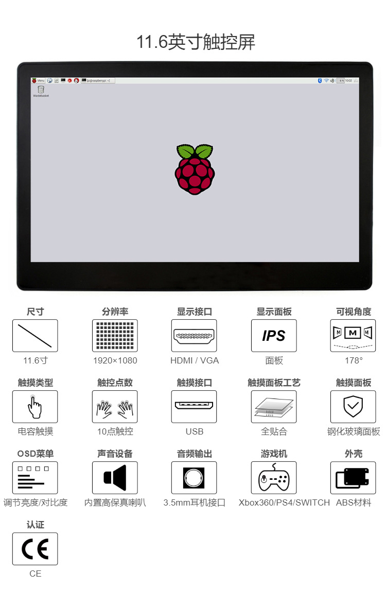 Weixue Raspberry Pi 4 11.6inch VGA/HDMI дисплей высокой четкости IPS экран емкостный сенсорный экран из закаленного стекла