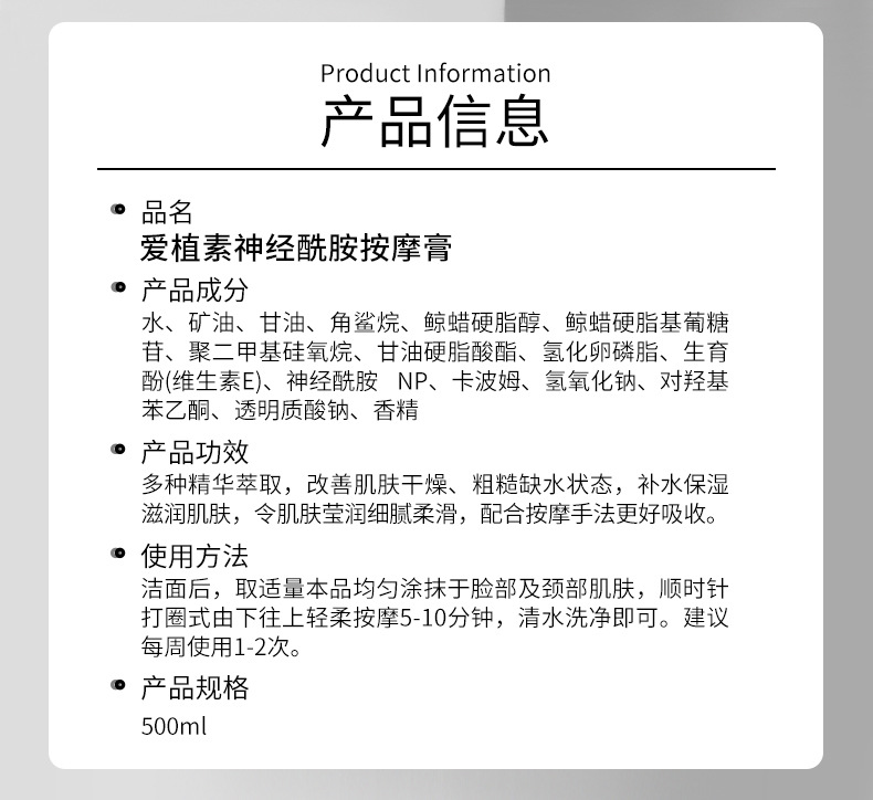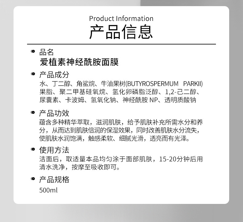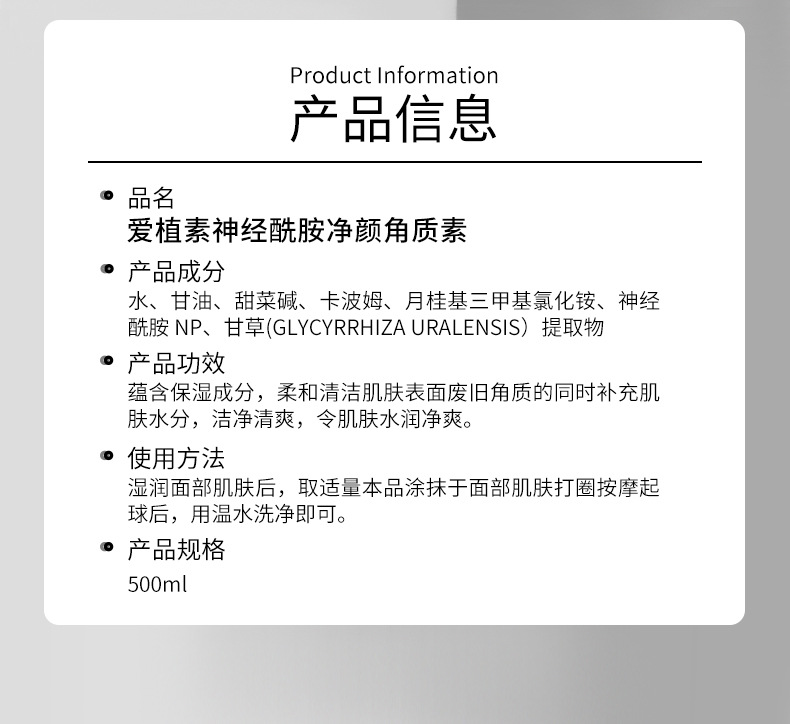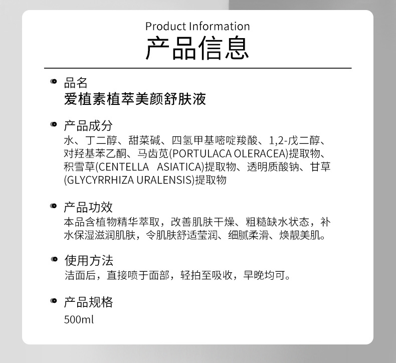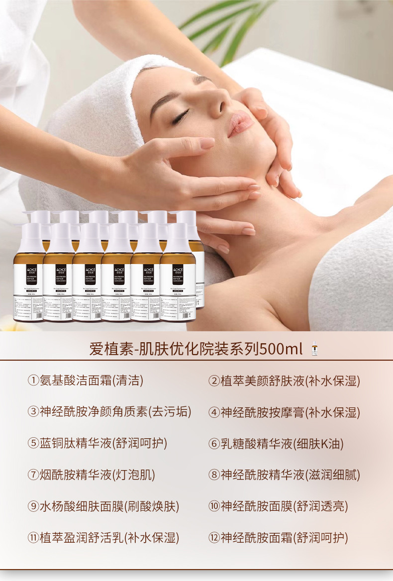 Экстракты растений Увлажняющее успокаивающее молочко; Успокаивающий лосьон для красоты с экстрактом растений; Ниацинамидная эссенция; Маска для очищения кожи с салициловой кислотой; керамидный крем; керамидная маска; Керамидный очищающий кератин; Керамидная эссенция; Керамидный массажный крем; Эссенция лактобионовой кислоты; Синяя медная пептидная эссенция; Очищающий крем с аминокислотами
