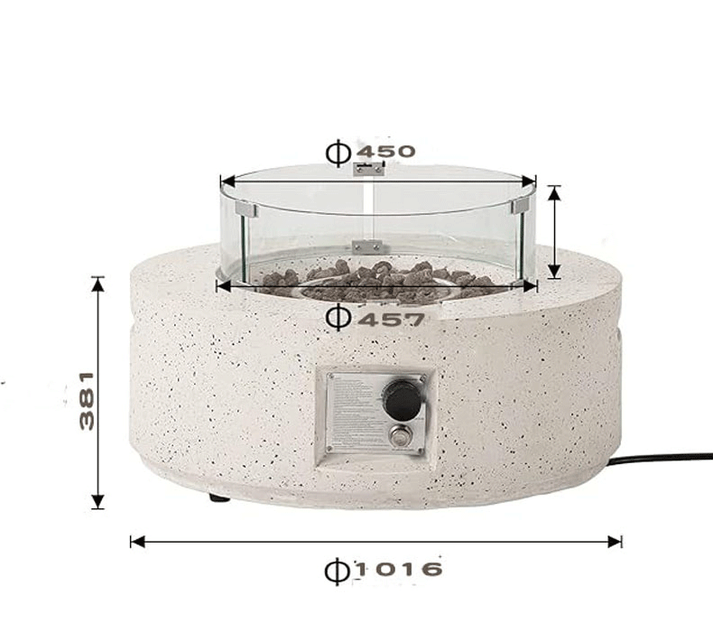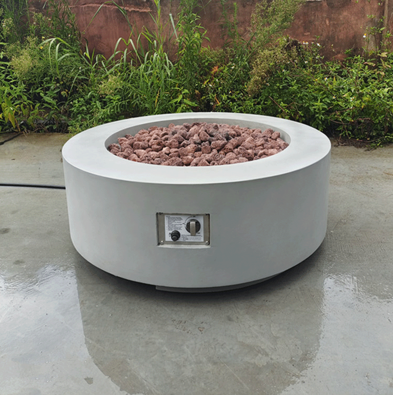 Круглый газовый камин из терраццо для гостиной, встроенный цементный камин для дома, виллы, внутреннего использования, с эффектом настоящего пламени.