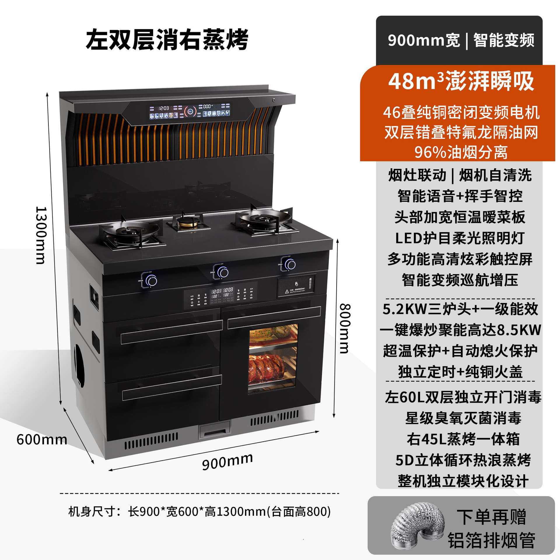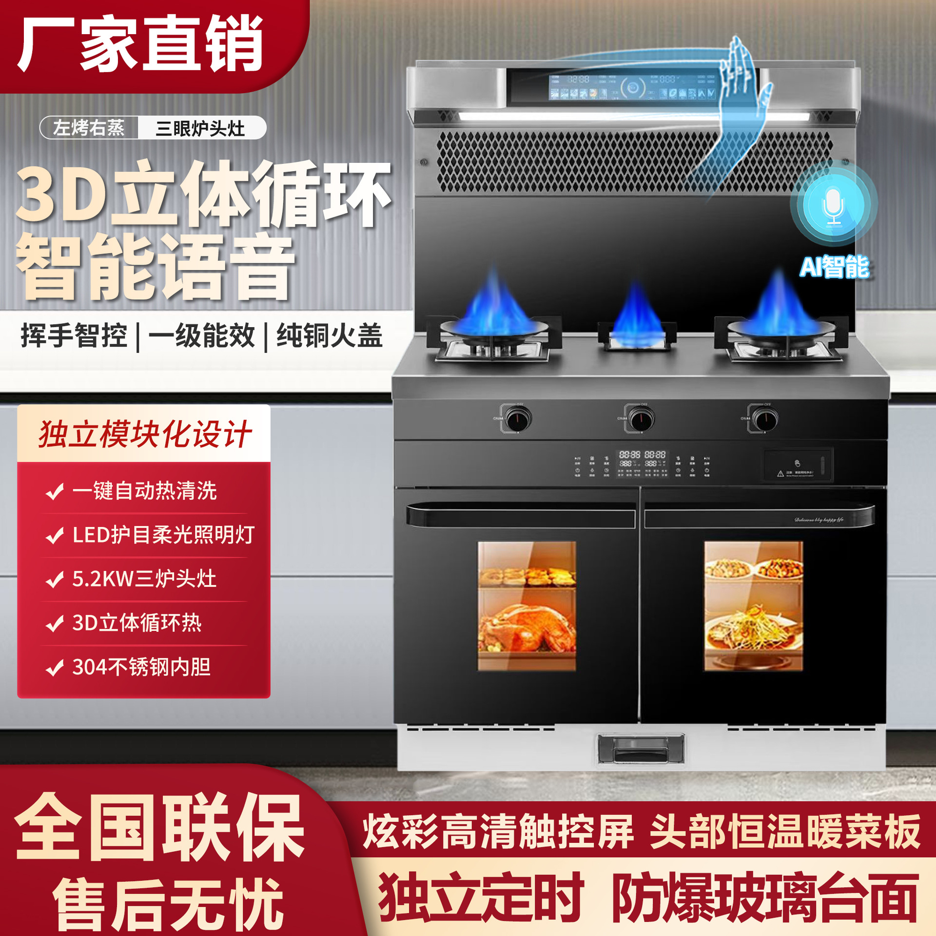 Встроенная трехконфорочная плита для домашней кухни с вытяжкой с регулируемой частотой, шкафом для дезинфекции, функцией приготовления на пару и выпечки, встроенная плита «все в одном» 1.0m
