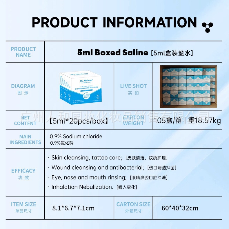 0,9% стерильный раствор соли 5 мл для атомизации, татуажа лица и промывания носа, небольшой раствор соли