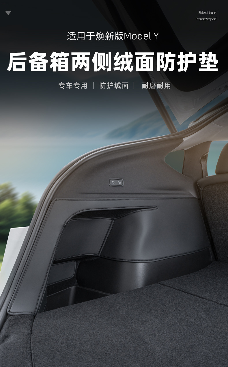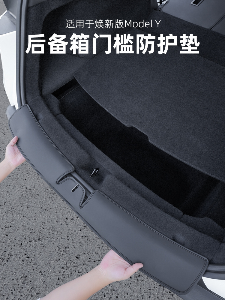 Подходит для новой версии коврика в багажник модели Y Tesla, замшевой защитной полосы на пороге задней двери с обеих сторон центрального управления.