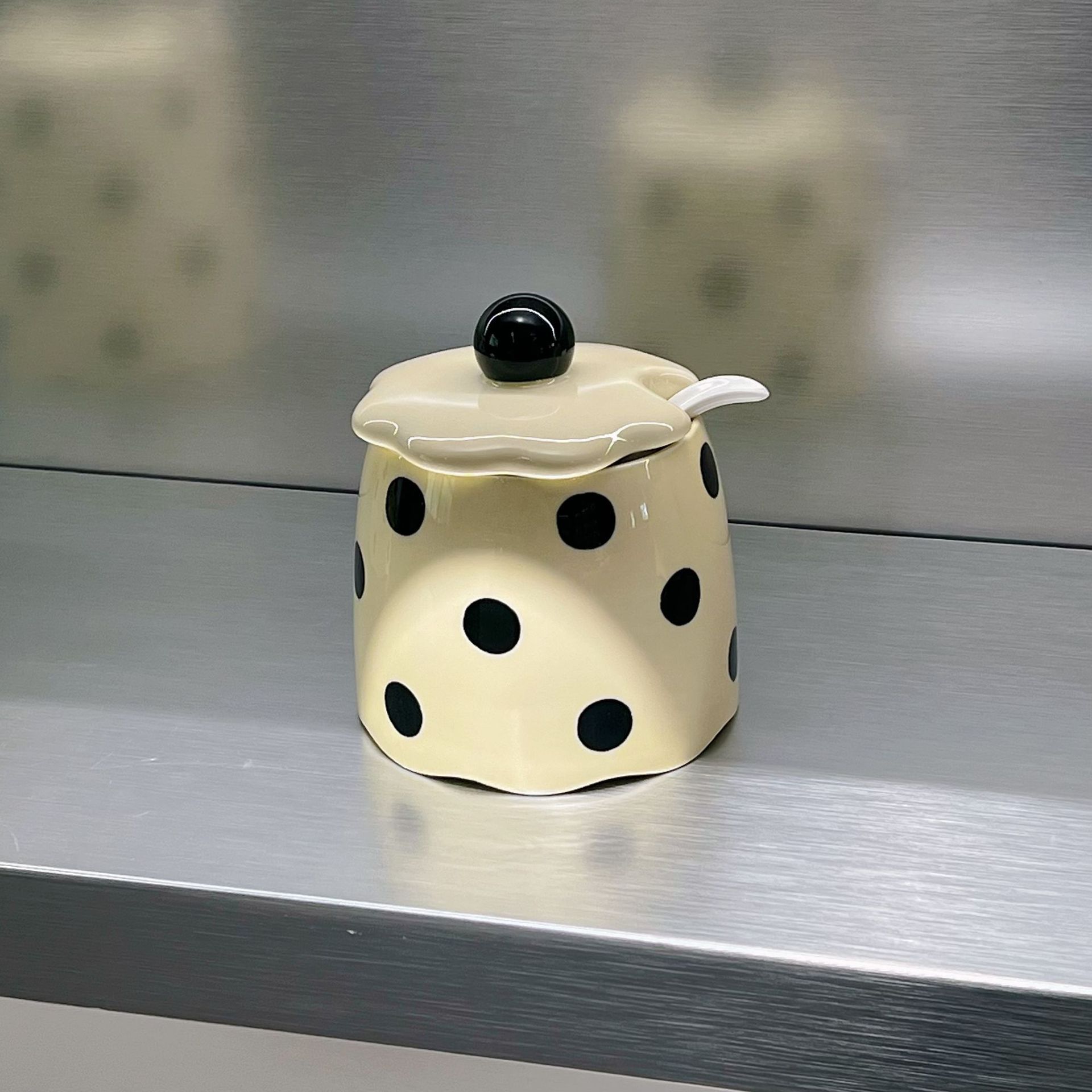Новая банка для сливочного масла в полоску в горошек для домашнего использования, устойчивая к высоким температурам полосатая банка с ложкой, керамическая кухонная банка для чили.