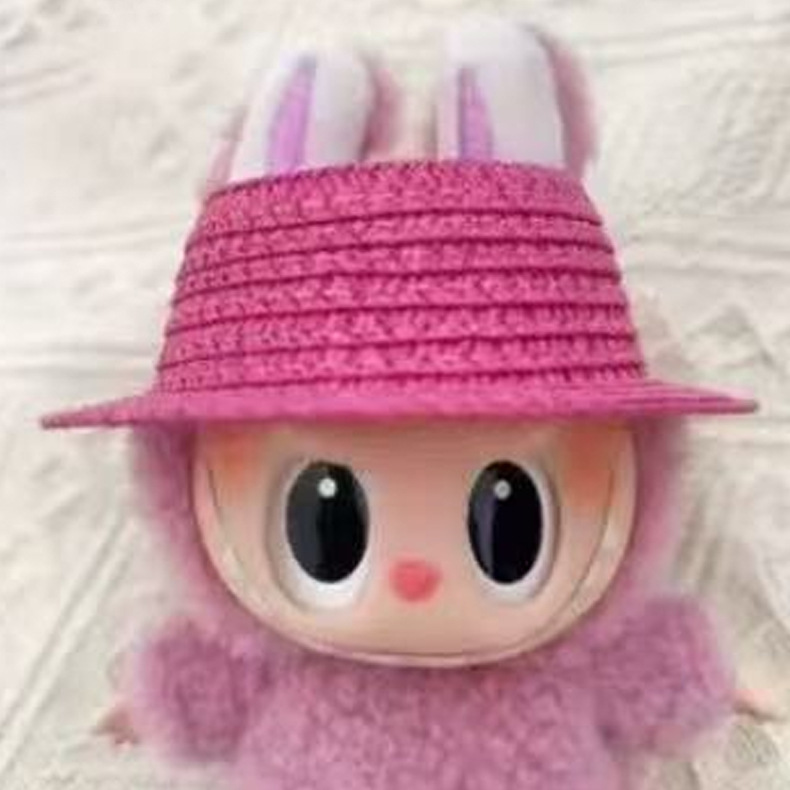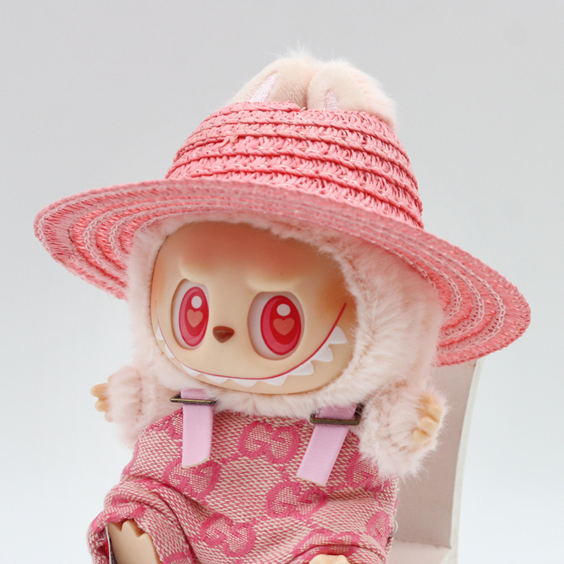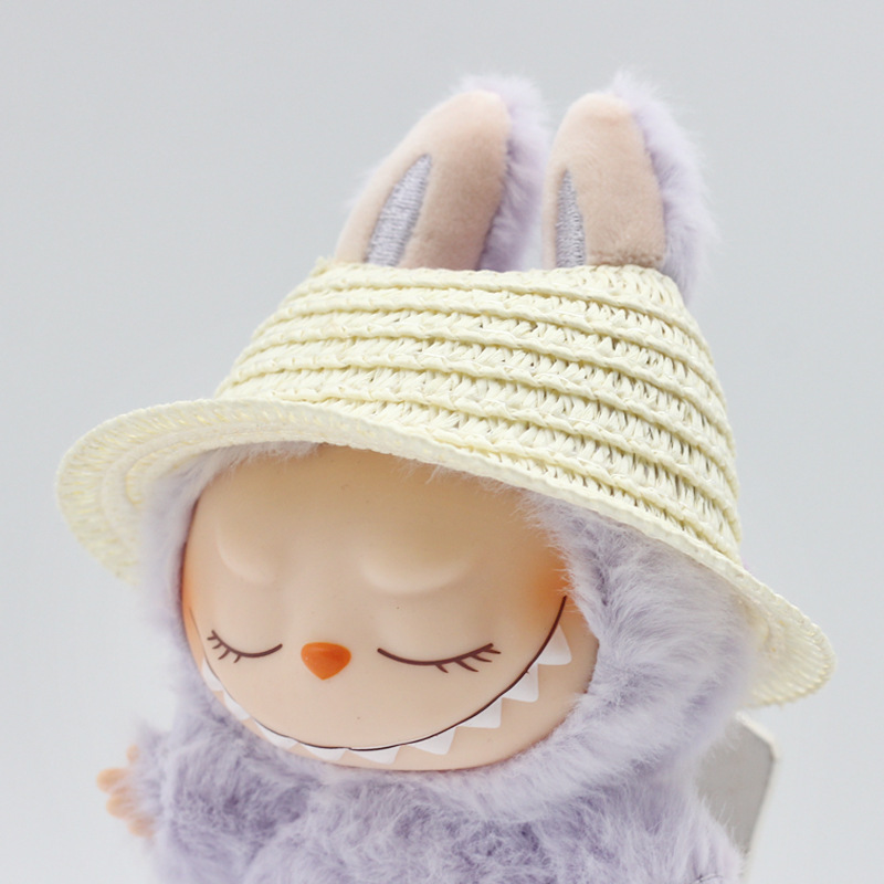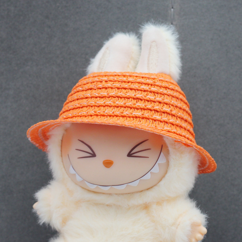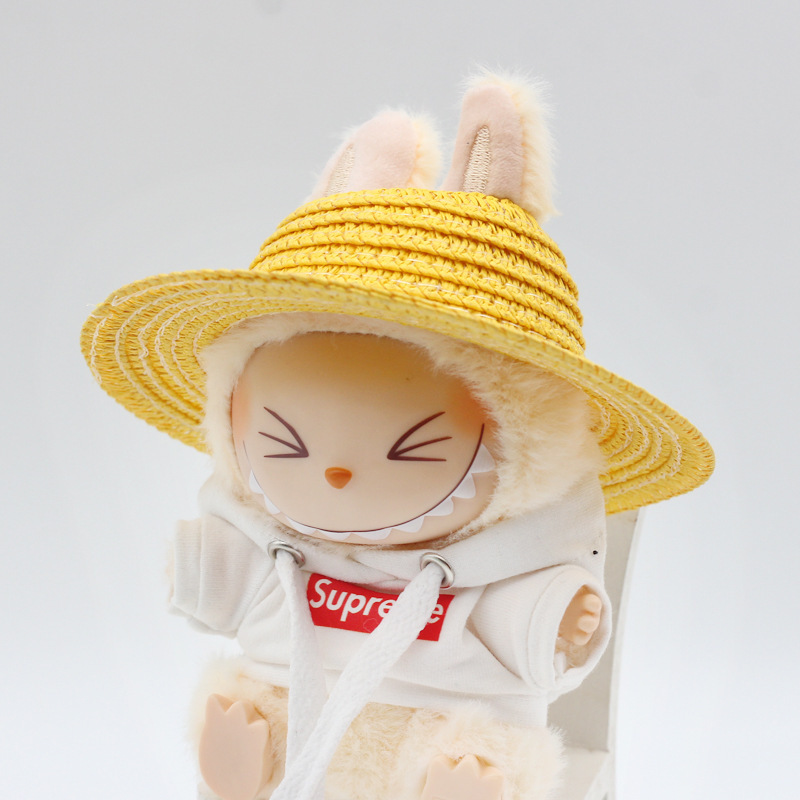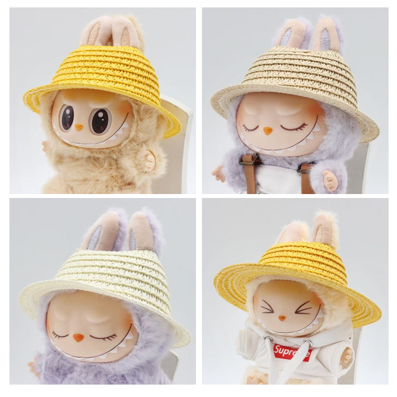 Соломенная шляпа ручной вязки labubu, комплект детской одежды, оригинальная шапка labubu, виниловая кукла 17 см первого и второго поколения.