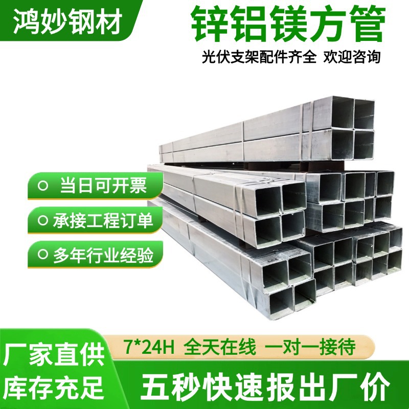 Алюминиево-магниево-цинковая квадратная труба для солнечных фотоэлектрических систем, прямоугольная труба для навесных стен, цинк-алюминиево-магниевая квадратная труба 40*60, фотоэлектрический кронштейн