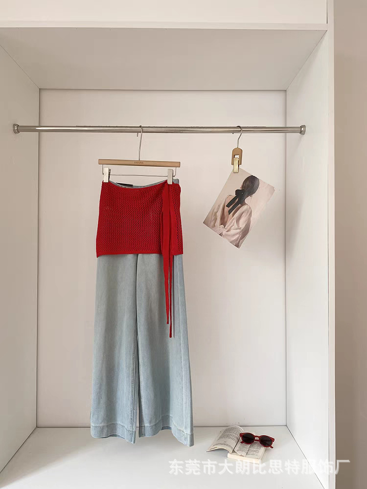 Летняя юбка 2025 года в корейском стиле, нишевая, с асимметричными бретелями, ажурная вязка, универсальная, высококачественная, модная.
