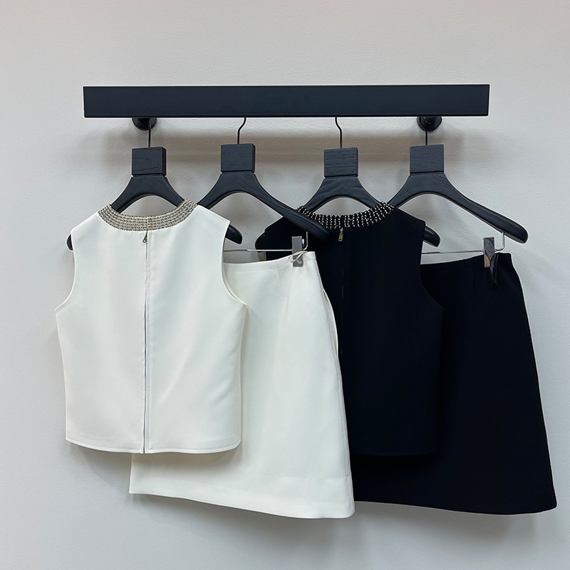 Новый элегантный женский костюм Nanyou 2025 весна-лето: топ с круглым вырезом и юбка с тяжелой вышивкой бисером