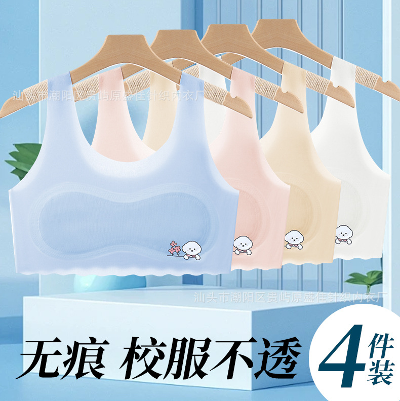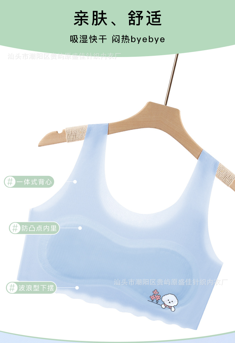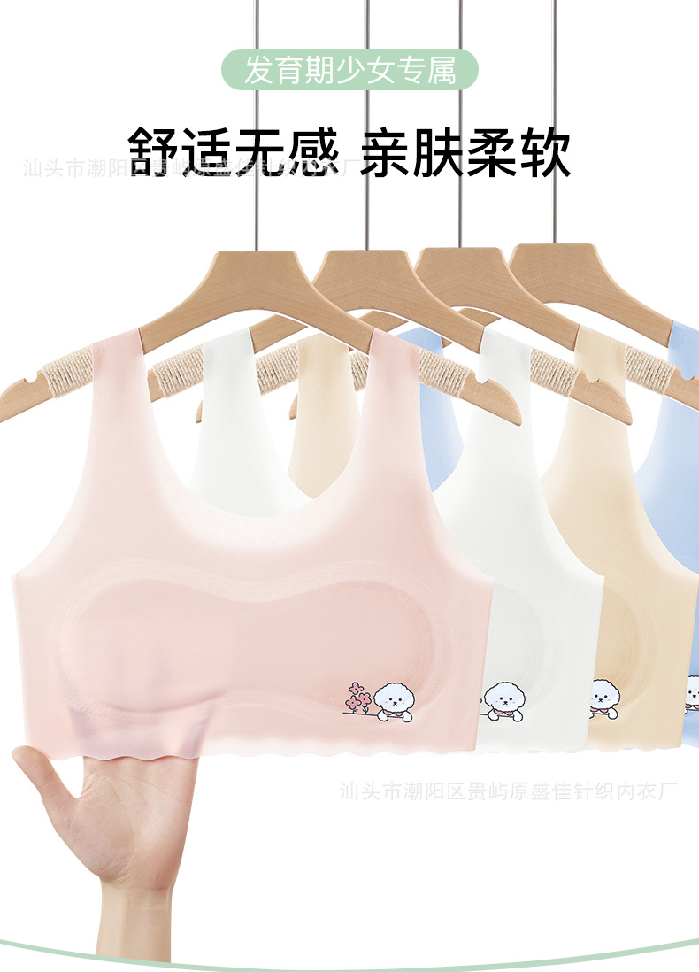 Жилет из ледяного шелка с фиксированной чашкой для девочек, бюстгальтер для девочек в период развития, для девочек начальной школы, для детей 6-12 лет, тонкий срез для девочек