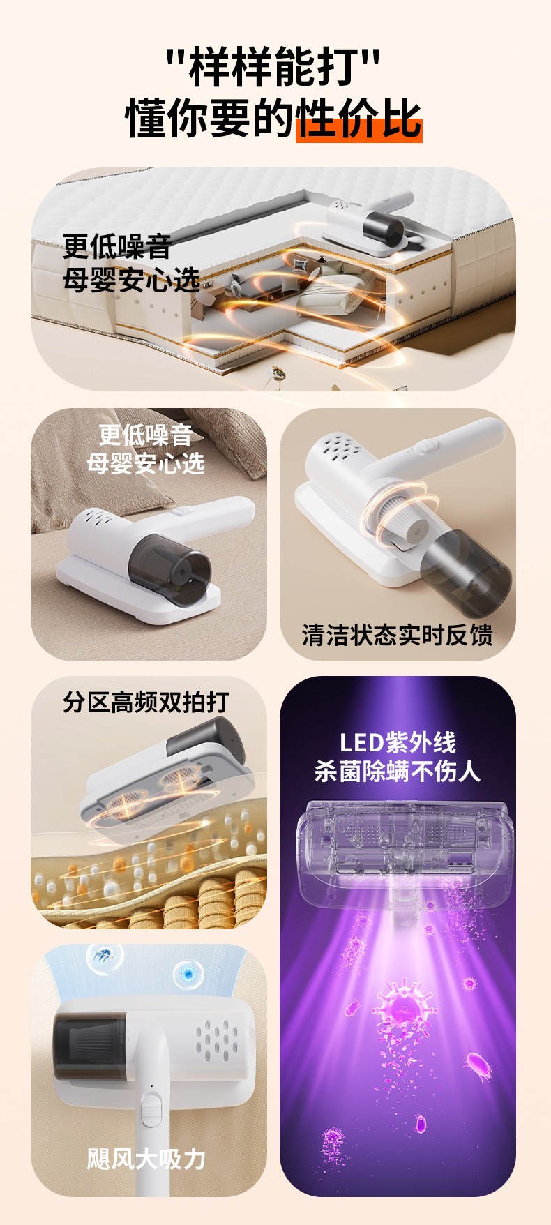 Бытовой беспроводной мини-удалитель клещей с сильным всасыванием, беспроводной удалитель клещей для кровати, большая всасывающая способность для удаления клещей, небольшой удалитель клещей