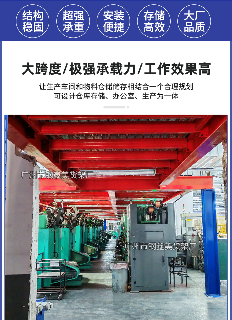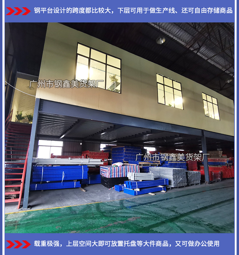I-образная стальная лофт-платформа, тяжелая стальная конструкция с большим пролетом, стеллаж для склада, двухэтажная разборная платформа-стойка