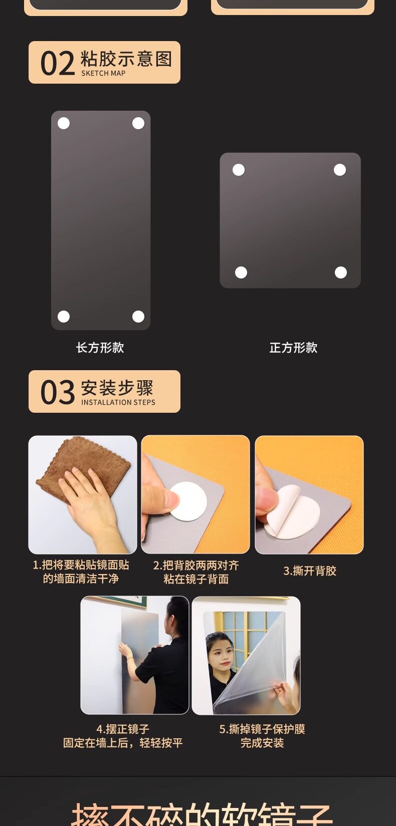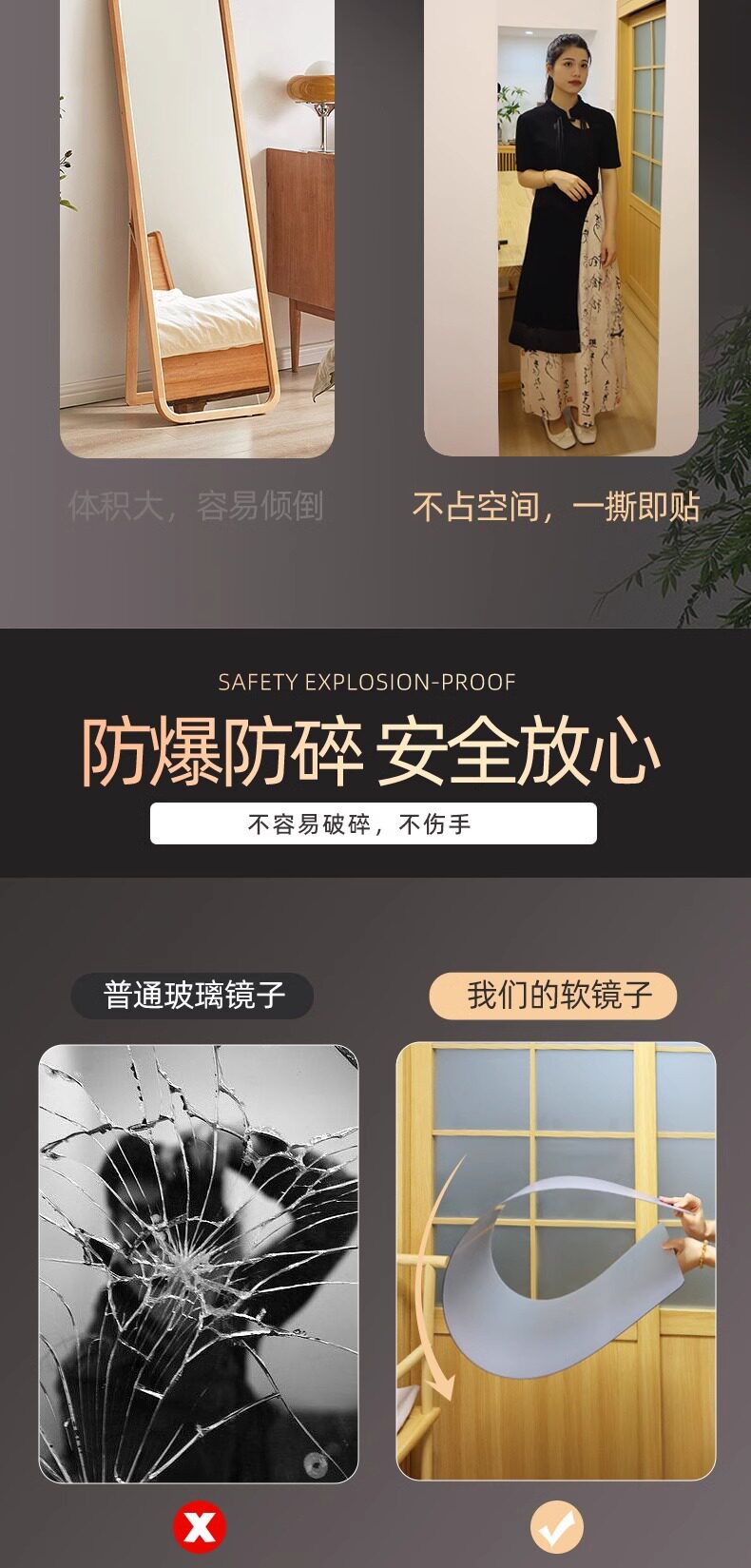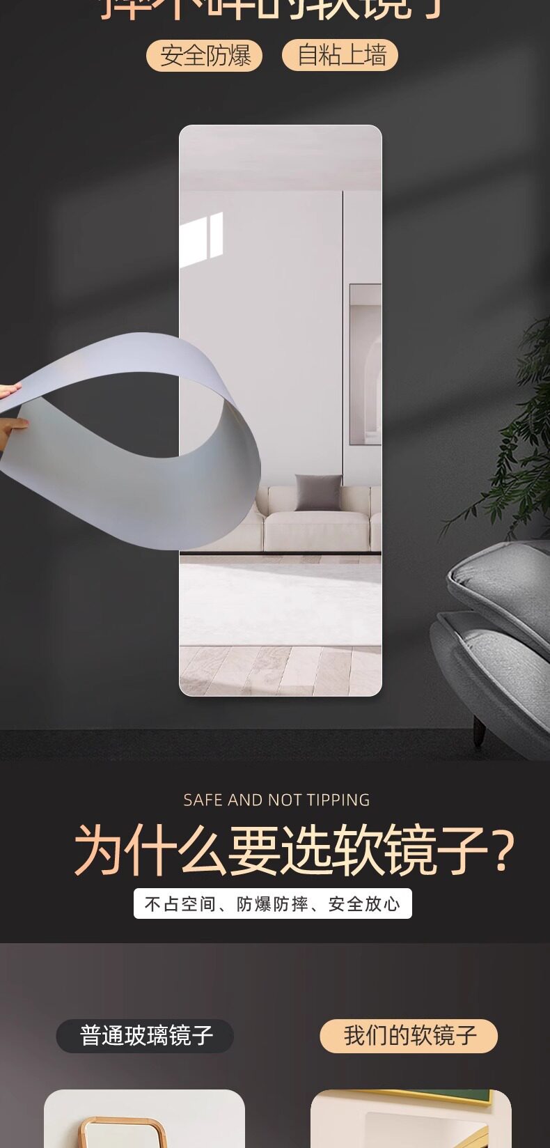 Мягкое настенное зеркало с самоклеящейся основой, акриловое зеркало в полный рост, настенное зеркало высокой четкости, зеркало для примерки, напольное зеркало